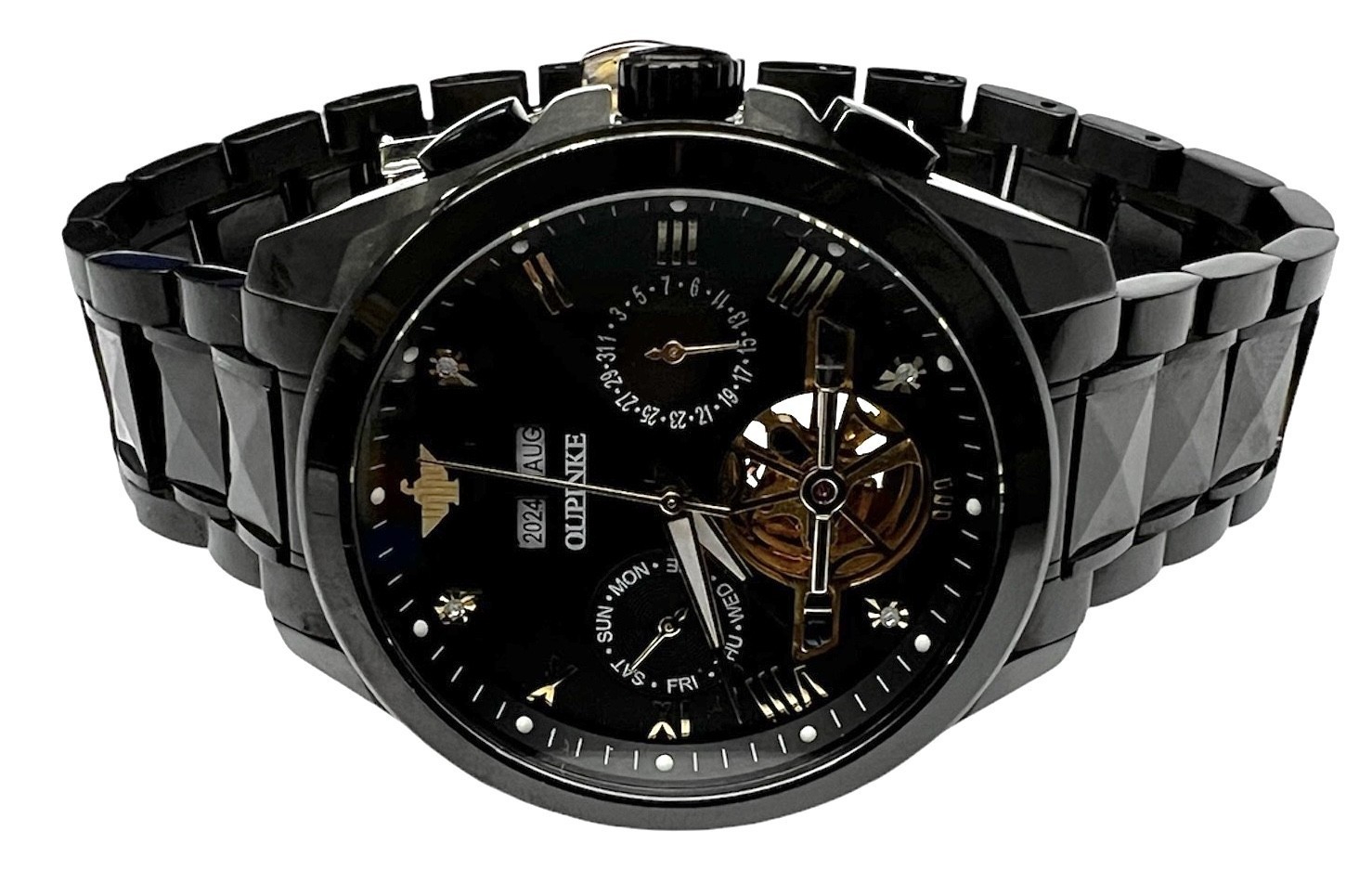 Type: Wrist watchBrand: OupinkeModel number: G3186Case width: 35mmWeight: 111.5Case Material: Stainless SteelBox included: noPaperwork included: noRunning: yesDial color: BlackMovement type: AutomaticCondition:Used