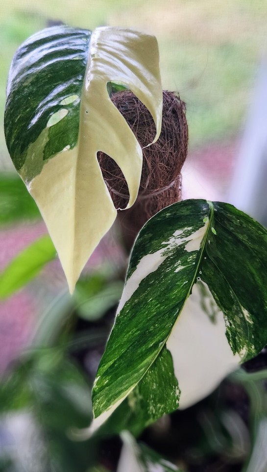 Albo pothos has beautiful cream and green leaves. When attached to grow pole or grown outdoors with the ability to climb the leaves enlarge. It loves bright light or part sun and does not require much special care. Pothos is not only dependable and easy to grow, it is easy to propagate to make new plants.