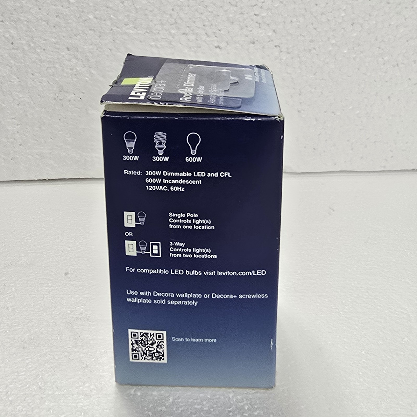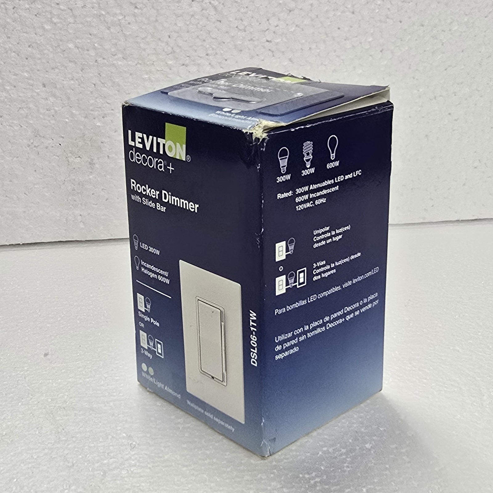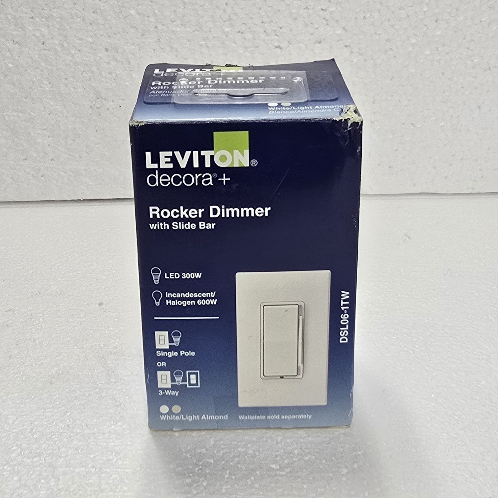 LEVITON DSL06-1TW DECORA ROCKER DIMMER WITH SLIDE BAR (OPEN BOX)