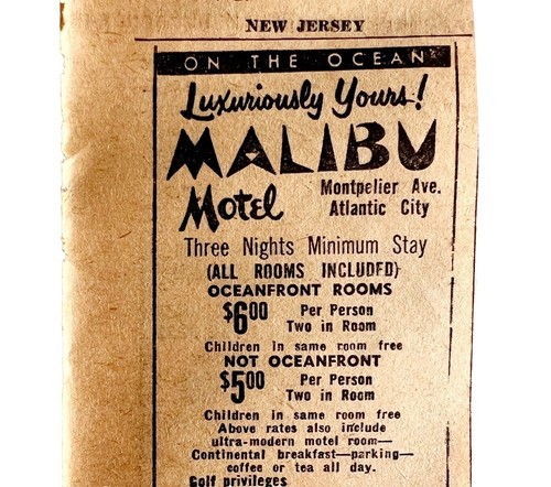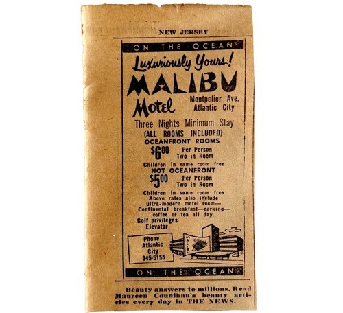 Malibu Motel Atlantic City Advertisement 1963 New Jersey Oceanfront DWDD17