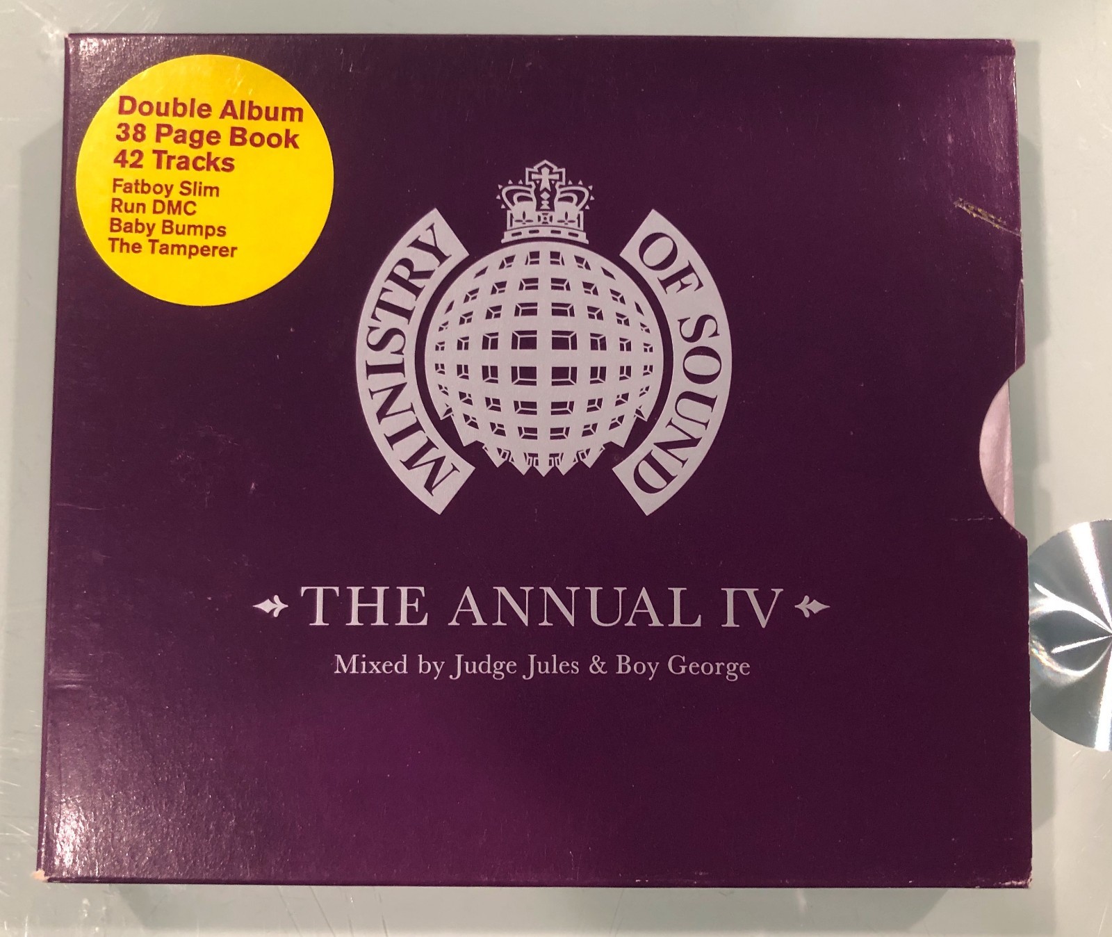 MINISTRY OF SOUND THE ANNUAL IV CD (MIXED BY JUDGE JULES AND BOY GEORGE). 2-CD SET. COMES FROM SMOKE FREE HOME. FREE SHIPPING. COMES IN PURPLE SLIP CASE WITH COLLECTIBLE BOOKLET.