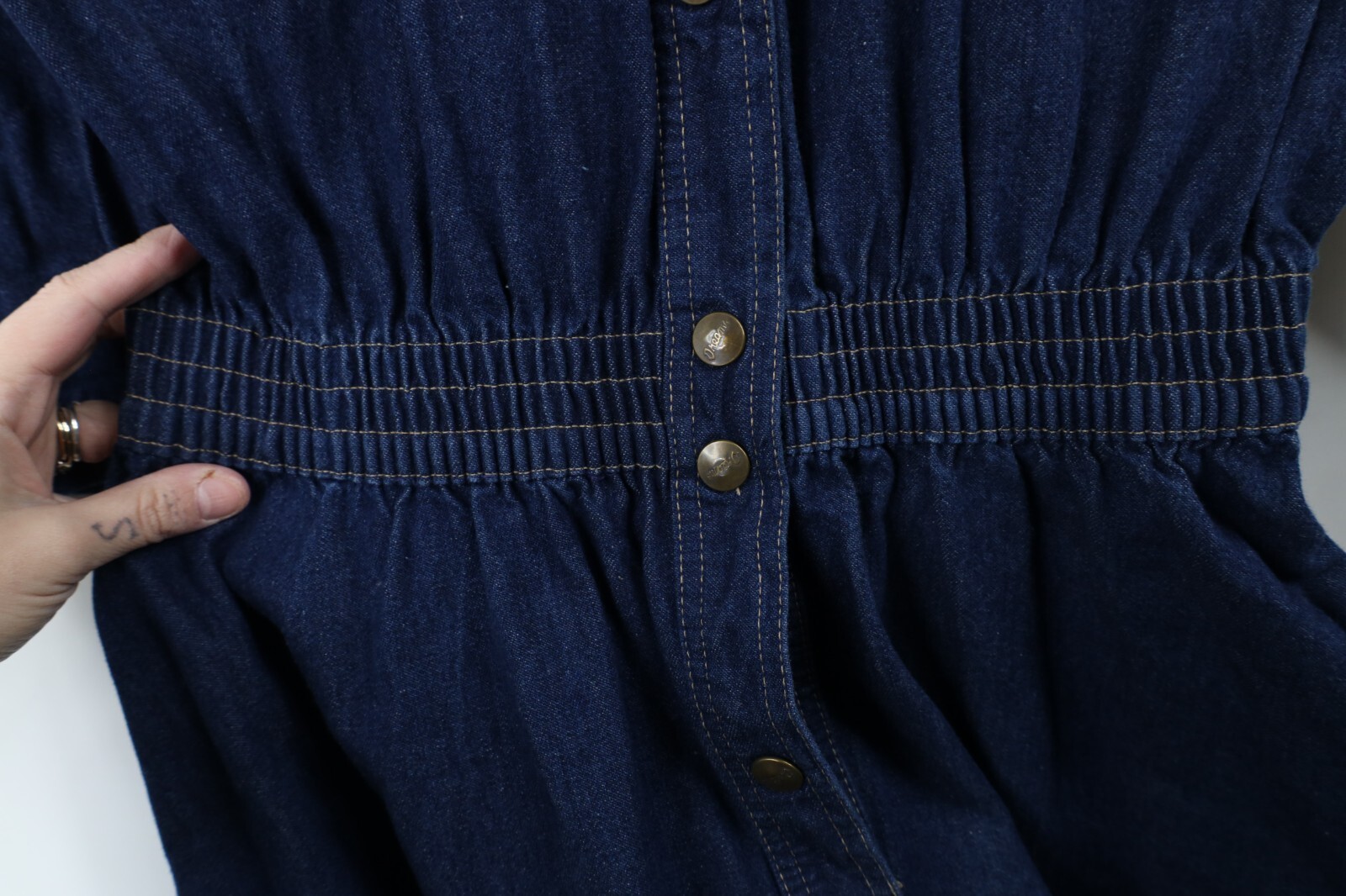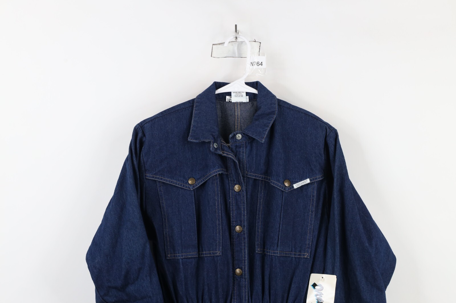 Deadstock Vtg 70s 80s Streetwear Womens Medium Long Sleeve Denim Jean Dress USA