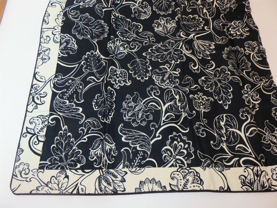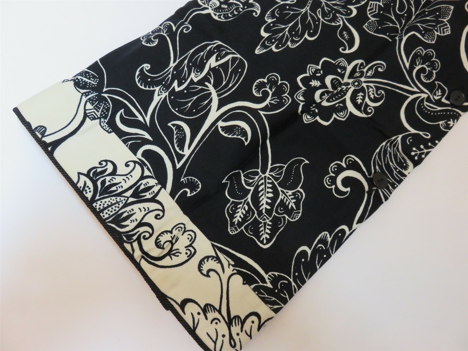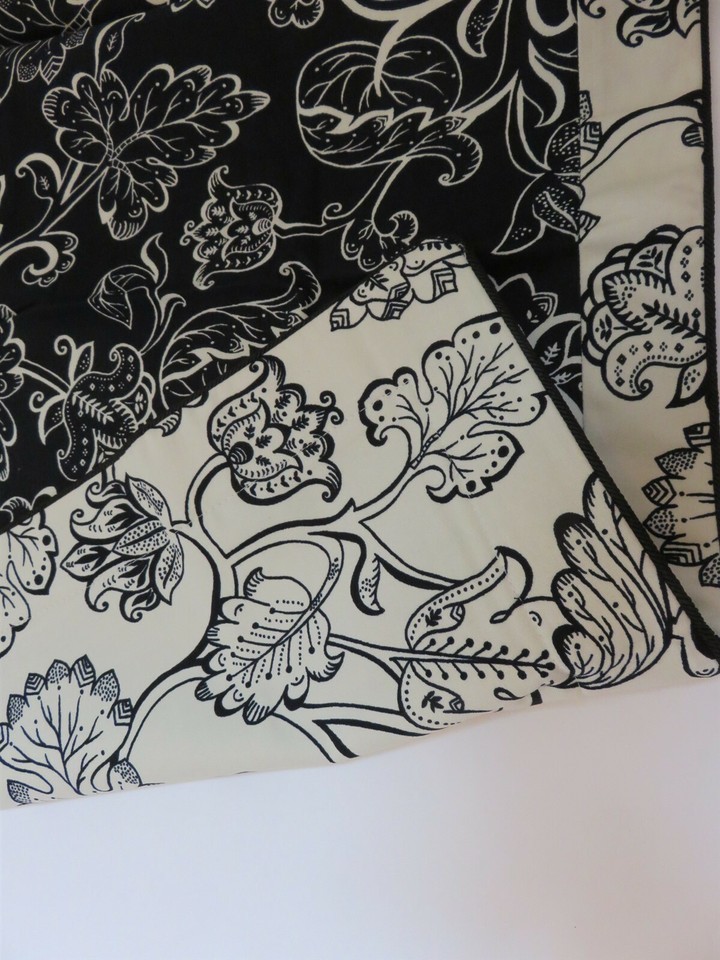black floral with a cream floral flange on 3 sides , reversing to cream and black floral