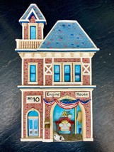 The Brian Baker Deja Vu Collection Engine House 10 is a unique multicolored resin sculpture depicting a fire house.