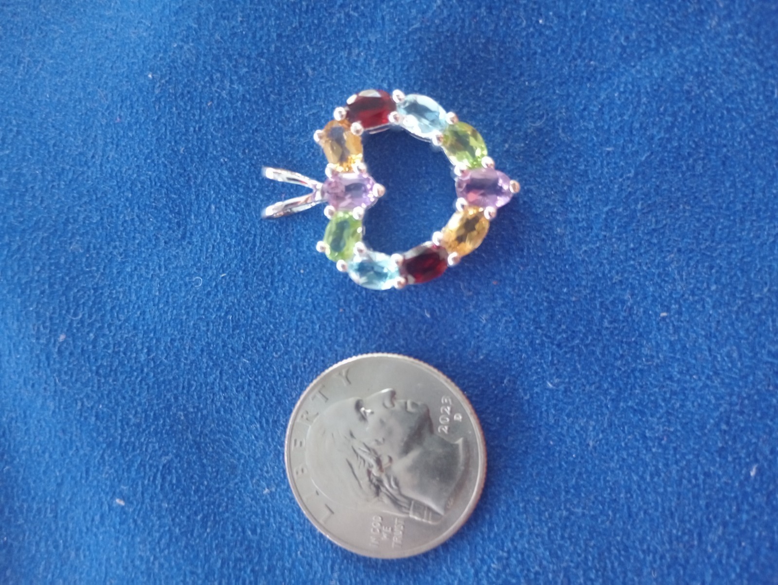 925 Sterling Silver Multicolored Gemstone Heart Pendant Free Shipping