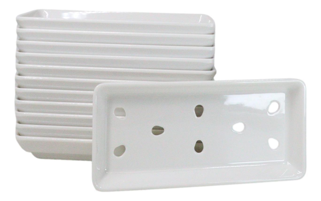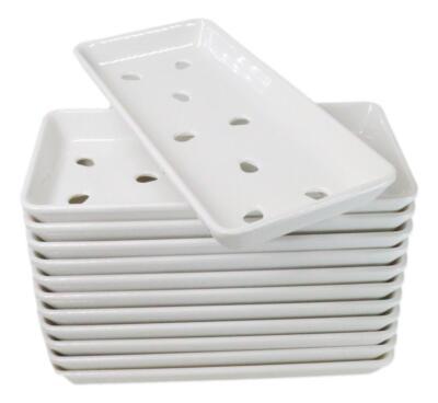 Pack Of 12 White Neta Zara Sushi Case Sashimi Plates With Drip Holes 8" By 3.75"