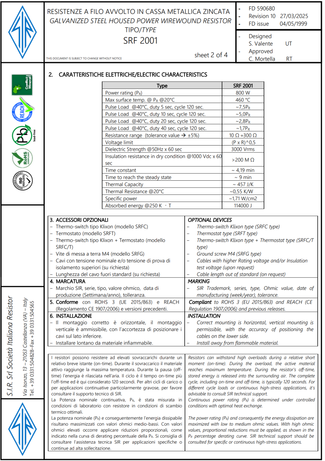 SRF/T 2001 75R J 2000W, SRF 2001 75R J 2000W |
