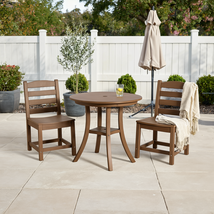 3-Pc HDPE Outdoor Dining Set: Round Table & Armless Chairs, Dark Oak