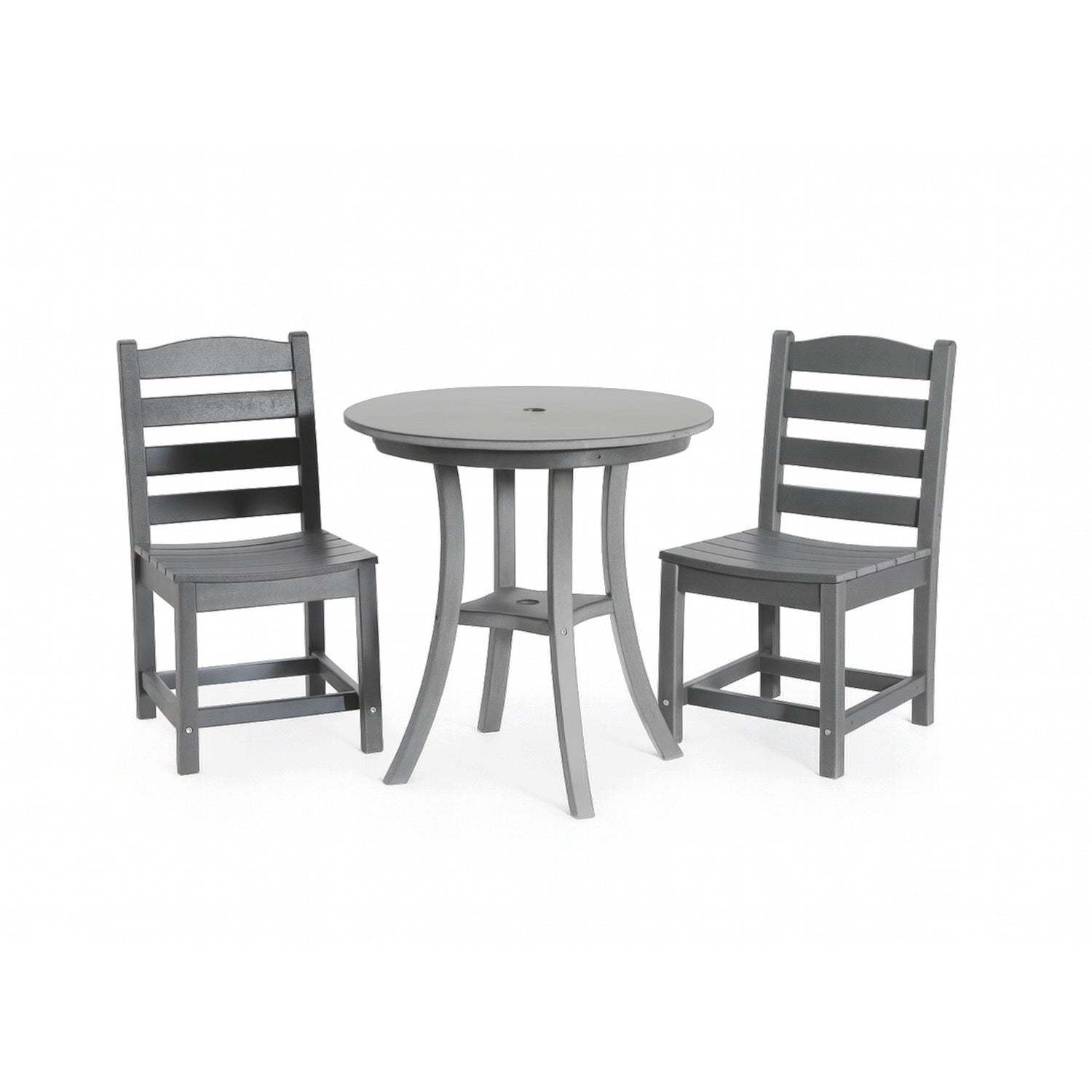3-piece outdoor patio bistro set includes a round table and 2 armless chairs, perfect for intimate backyard or balcony dining.