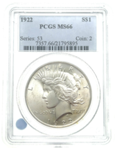 1922 Silver Peace Dollar Graded by PCGS as MS66 High Grade Uncirculated