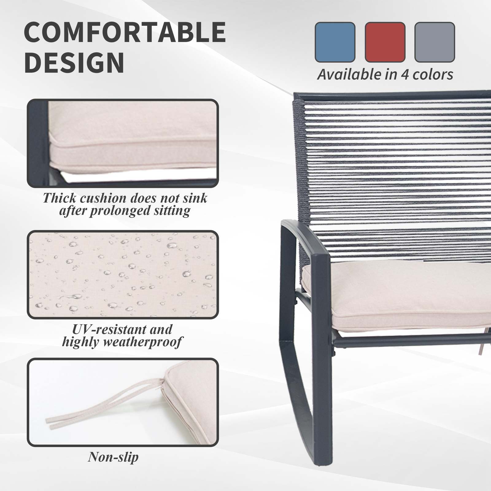 Smooth Rocking Comfort: Ergonomic design with a gentle sway motion and thick cushions for cloud-like relaxation.