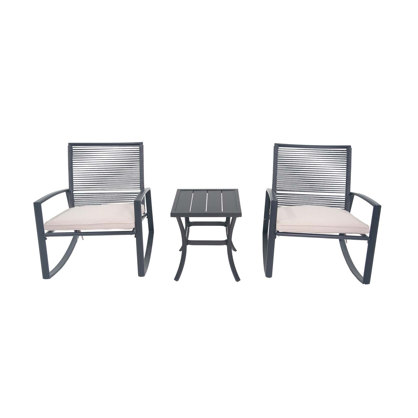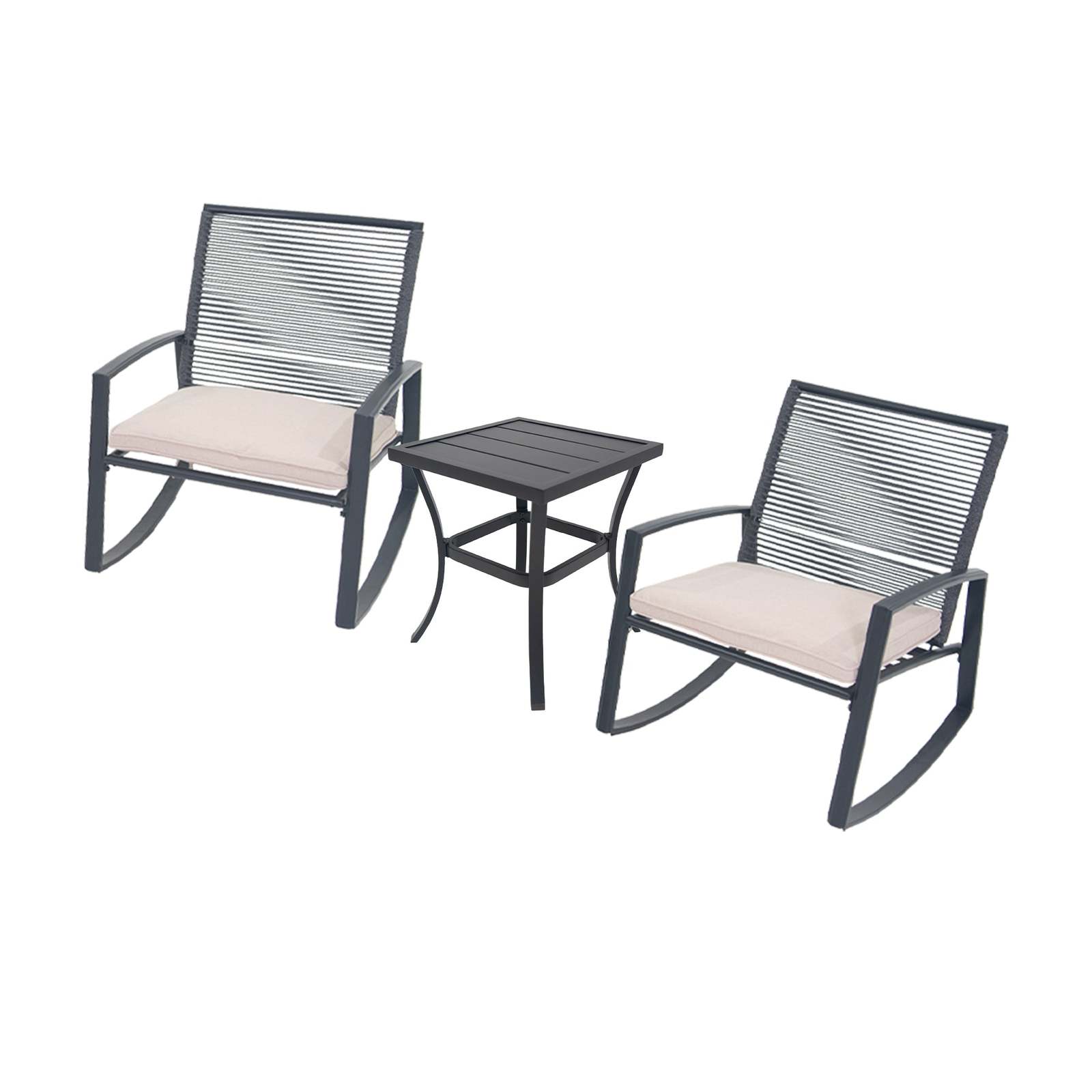 2-Person Outdoor Patio Metal Rocking Bistro Set with Table