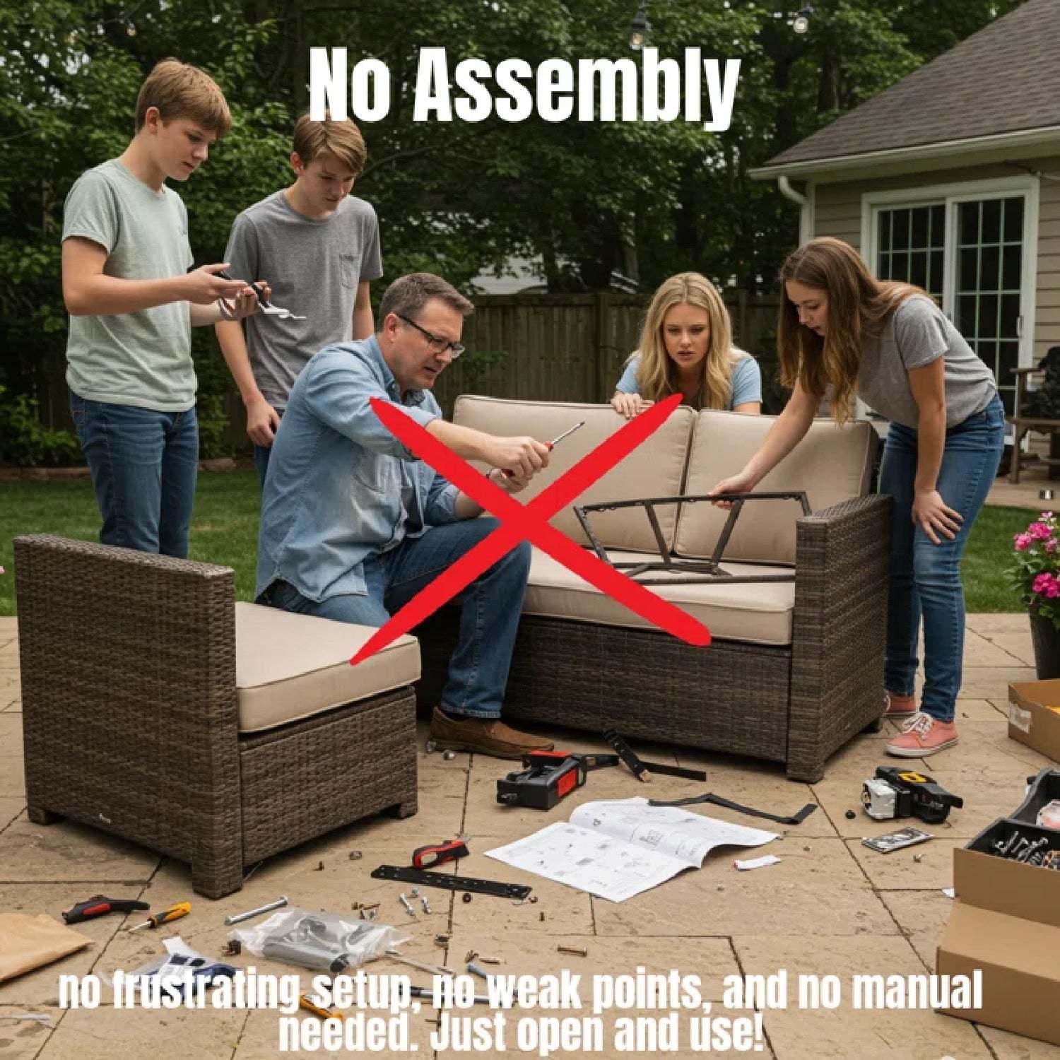 Experience unmatched comfort and refined elegance with this 79-inch outdoor loveseat, handcrafted from premium weather-resistant HDPE wicker in a stunning blend of neutral tones. Designed to impress, this loveseat features ultra-soft 5-inch thick cushions wrapped in durable fabric, known for its resistance to the elements. The gently sloped back enhances relaxation, while the integrated cup table and interlocking clips offer added convenience and stability. With machine-washable cushion covers, scratch-free nylon feet, and no assembly required, this show stopping piece effortlessly combines beauty and functionality for any outdoor setting.