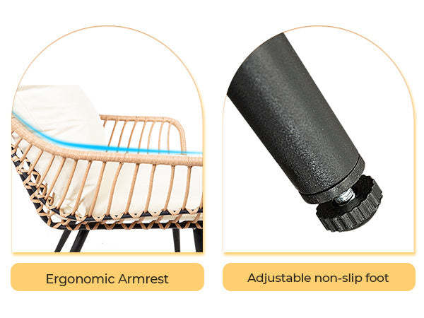 ?Outdoor Boho Furniture Design: This small small patio furniture set with two footrests, making it easy to relax and kick your feet up while sitting on the stool. Each ottoman can also be used as a stool, supporting up to 250lb, which adds versatility to this patio furniture set.