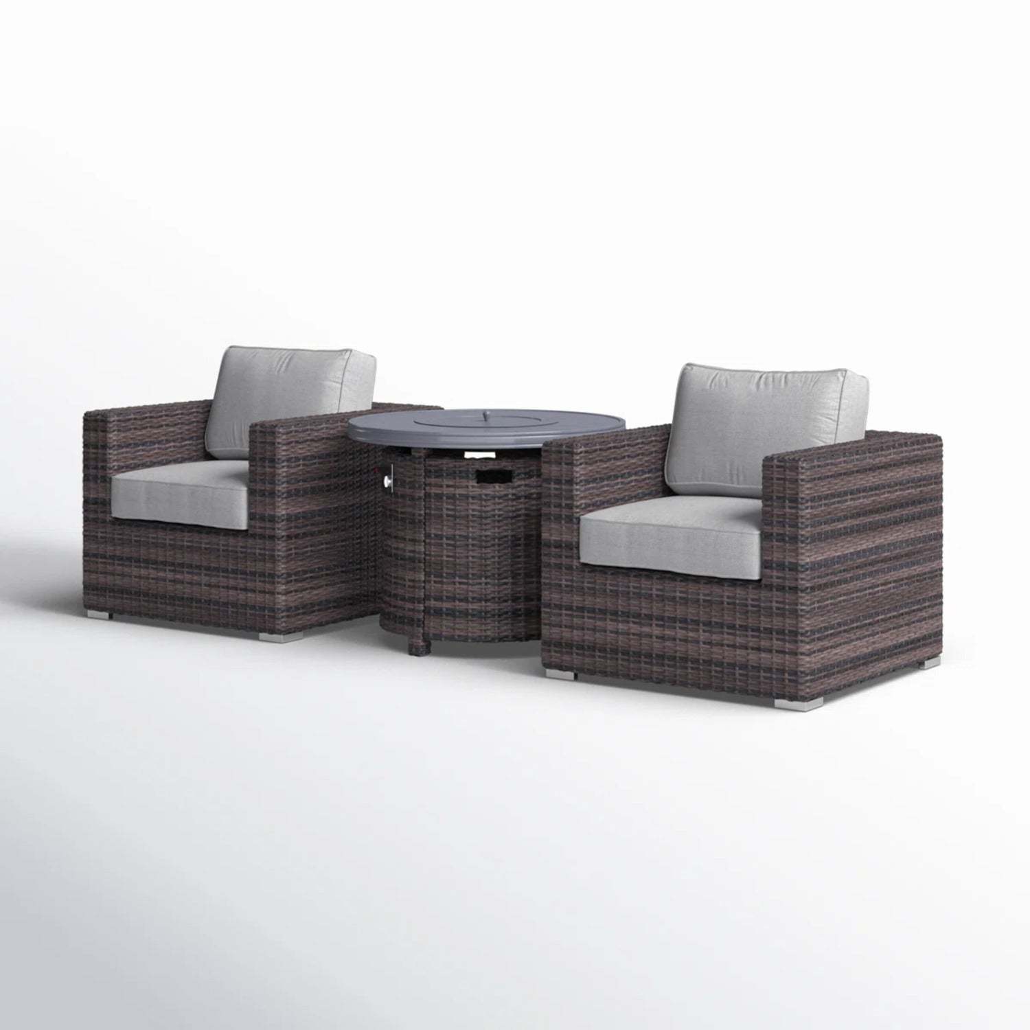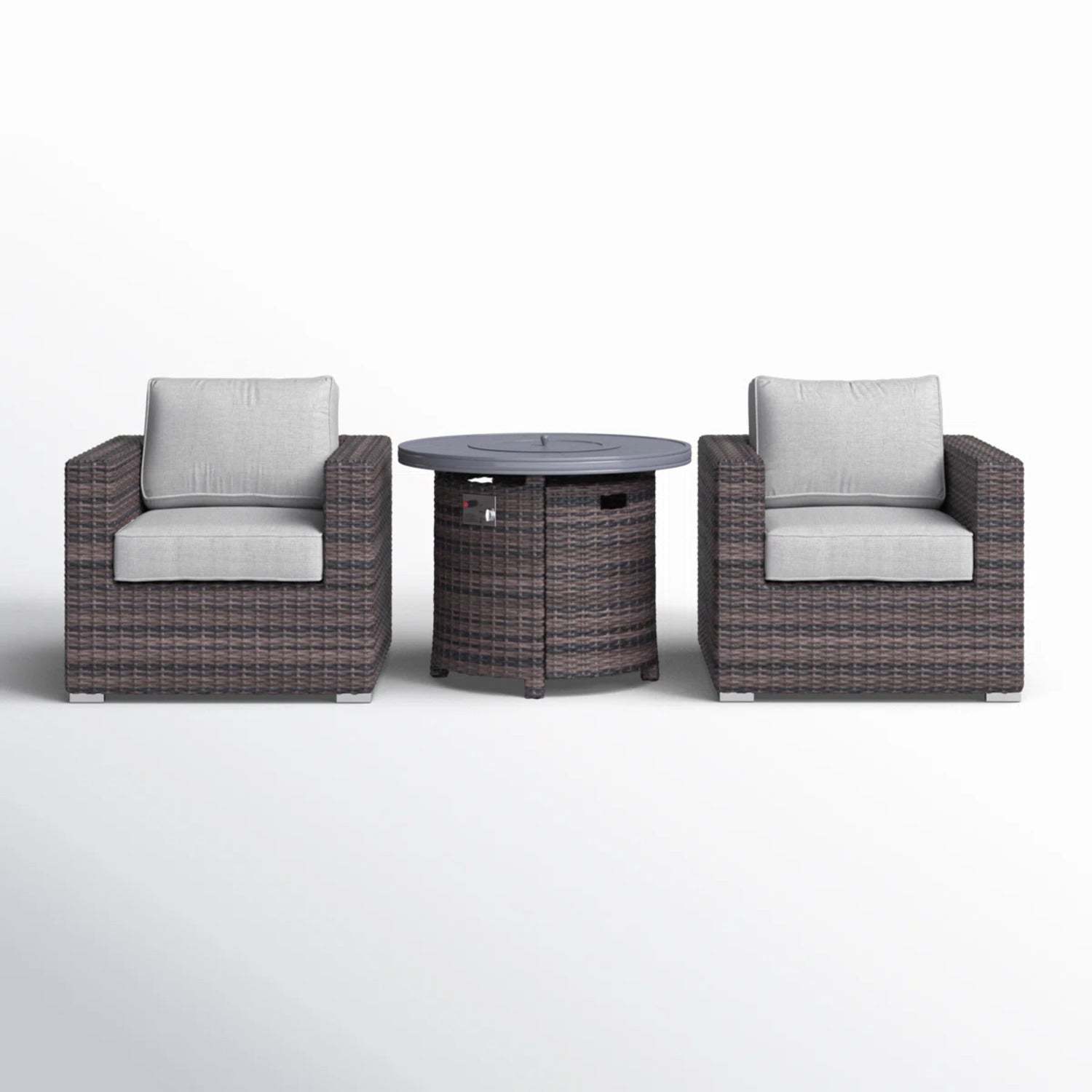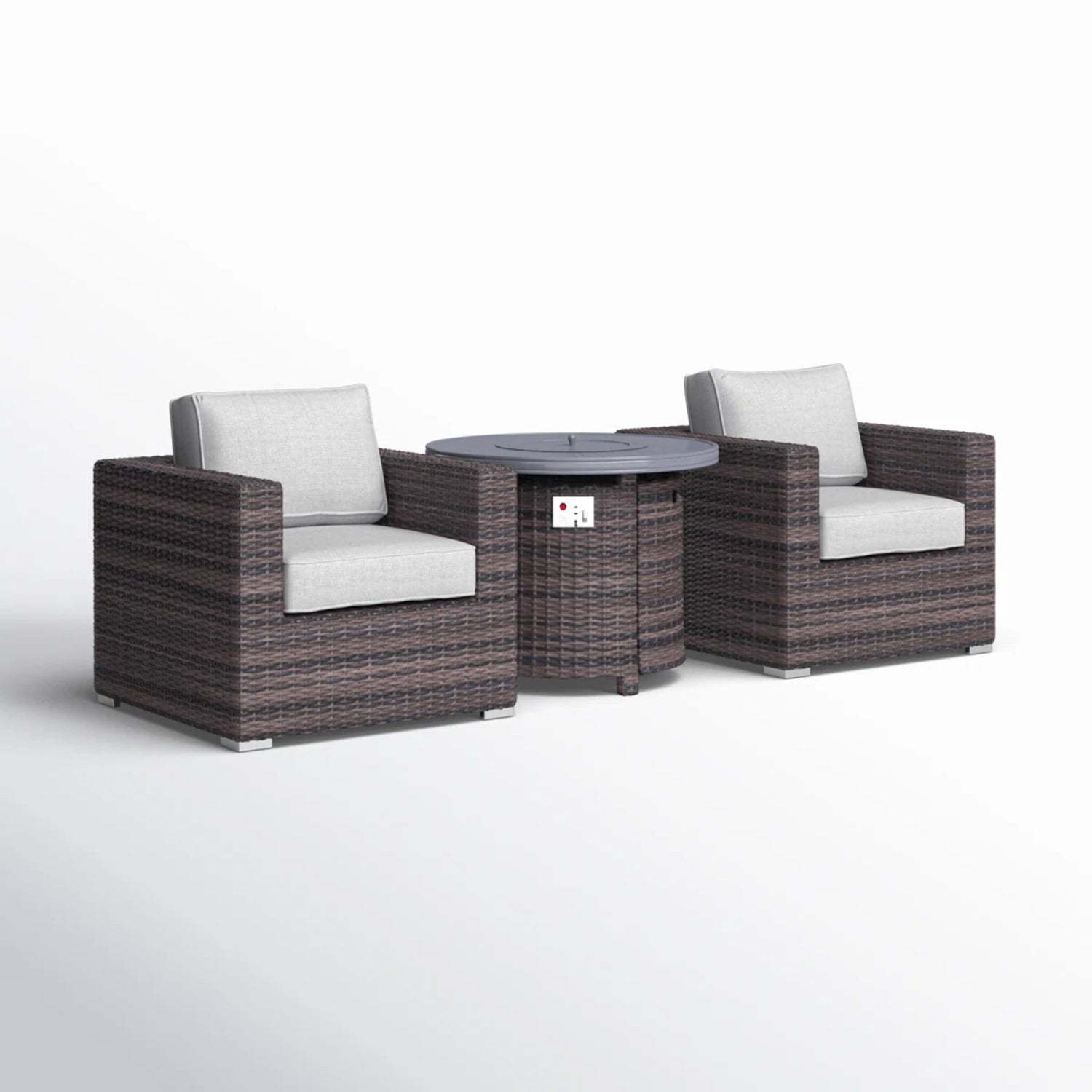 3-Piece Set for Two: Includes 2 cushioned lounge chairs and 1 fire pit table?perfect for small patios, balconies, or cozy nooks.