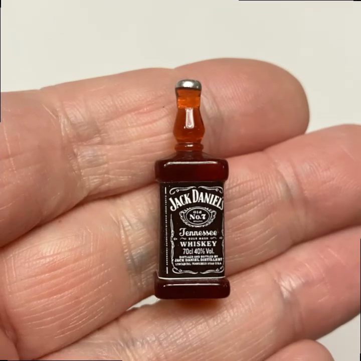 Add a touch of realism to your dollhouse bar with this super realistic Jack Daniels whiskey bottle. Made from high-quality resin, this 1:12 scale bottle is a perfect addition to your collection of dollhouse decor and accessories. The bottle features intricate details and a stunning design that will make it stand out in your display.