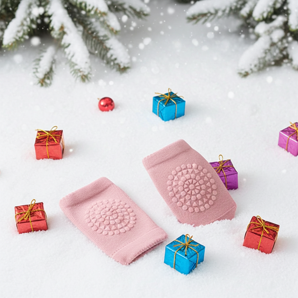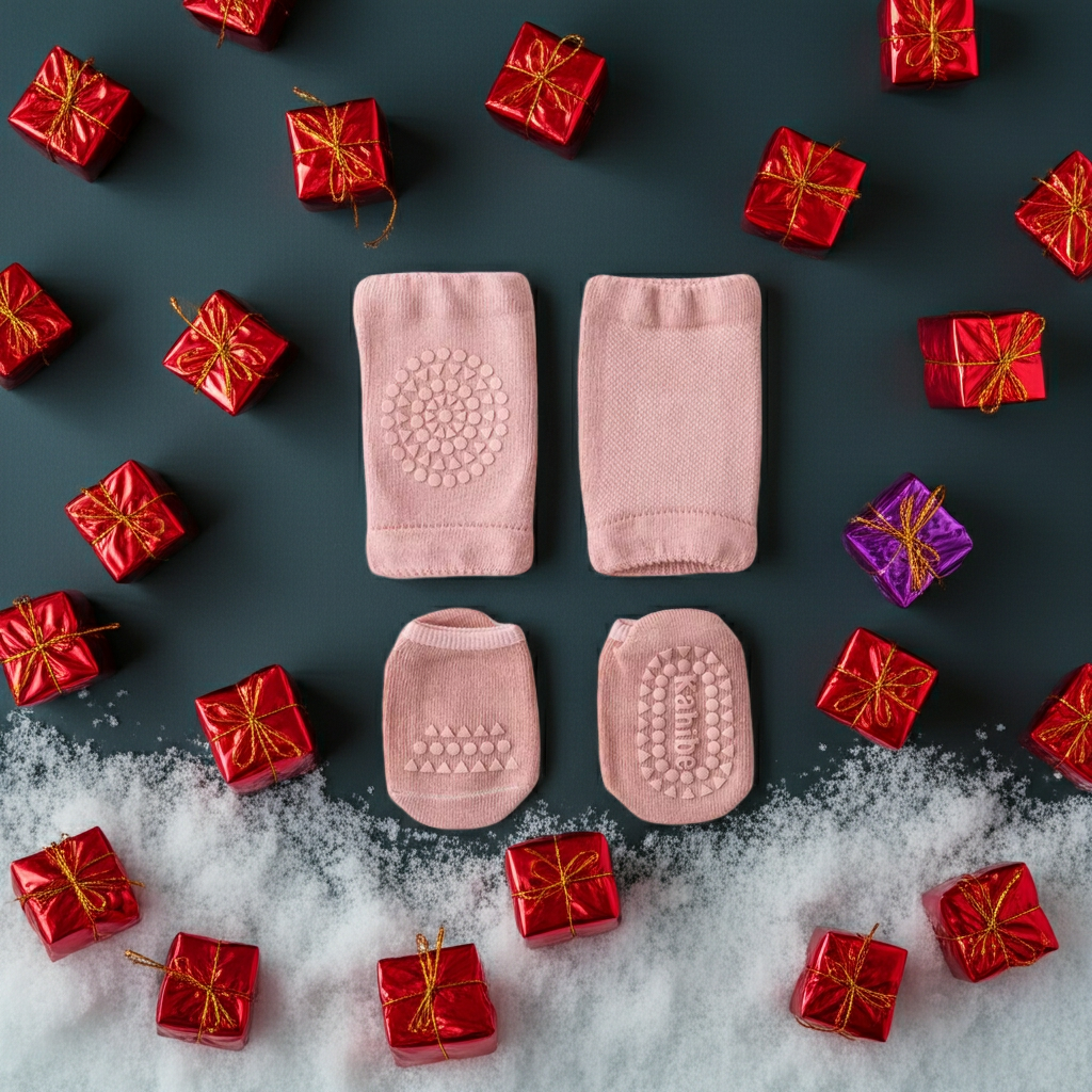 MATCHING SET: Includes one pair of knee pads and coordinating anti-slip socks in light pink color for complete crawling safety
