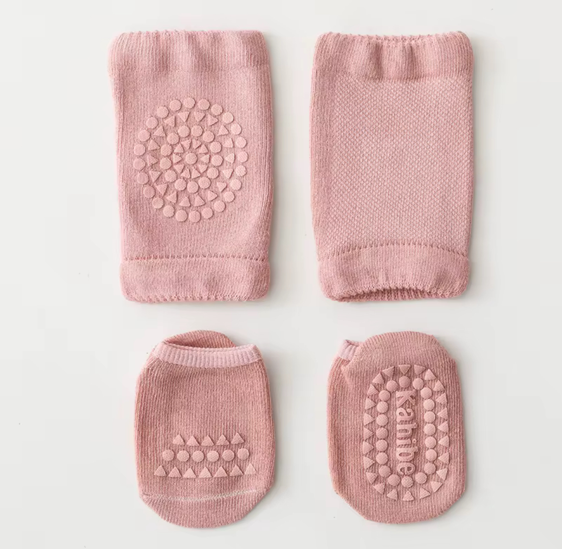 Baby Knee Pads and Anti-Slip Socks Set, Non-Skid Crawling Protection, Light Pink