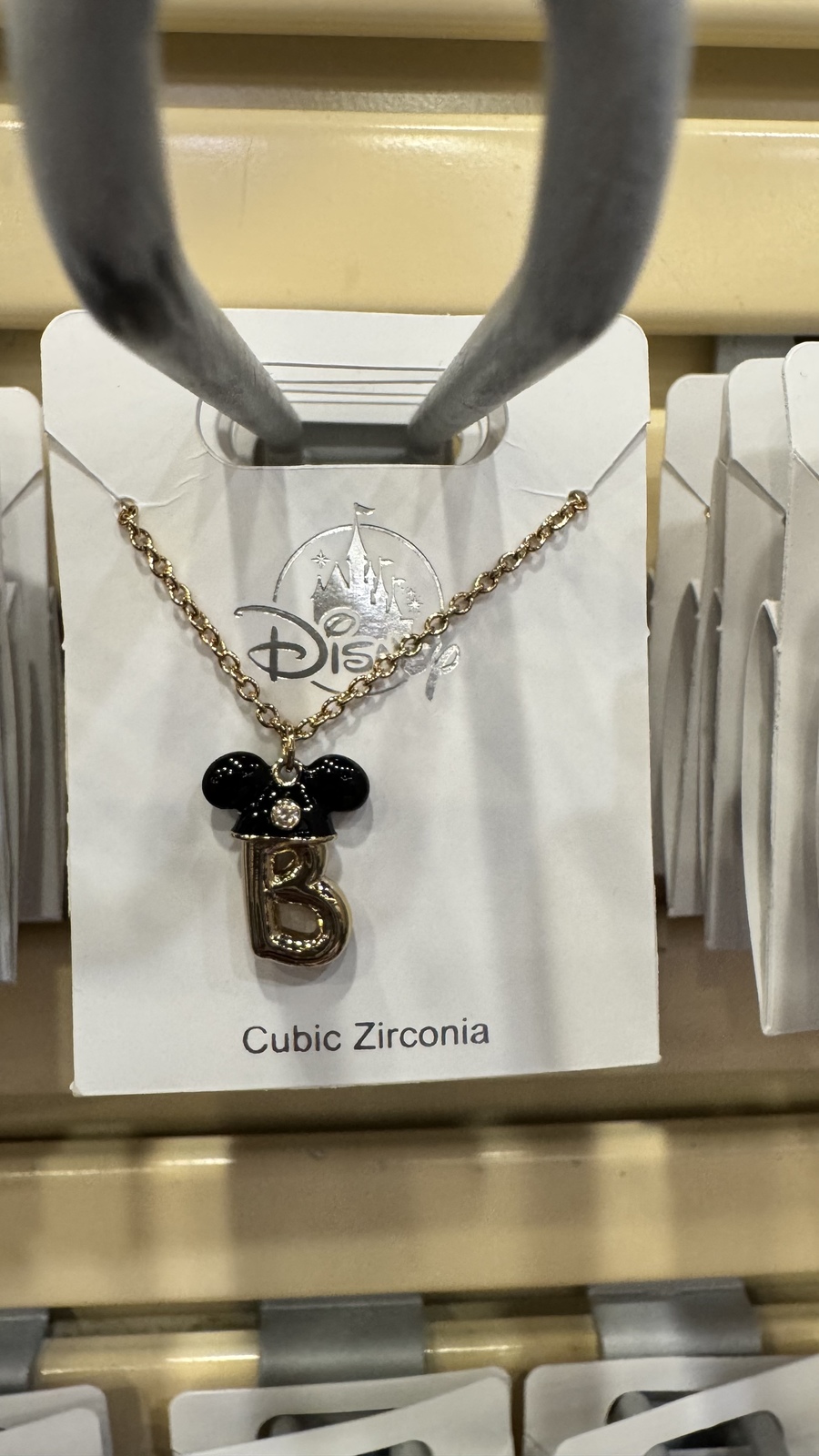 Disney Parks Mickey Mouse Ears Cubic Zirconia Letter B Gold Color Necklace NEW