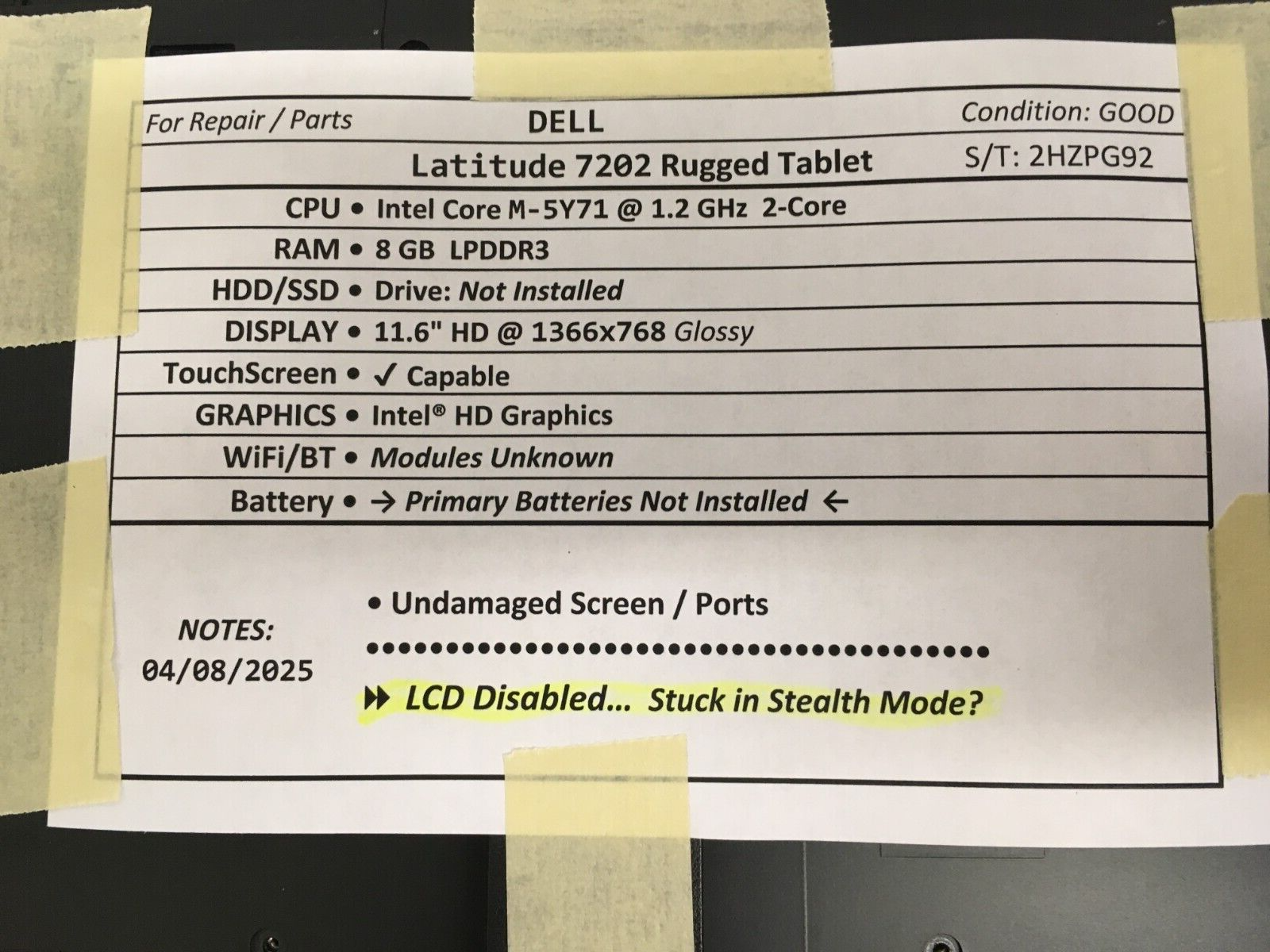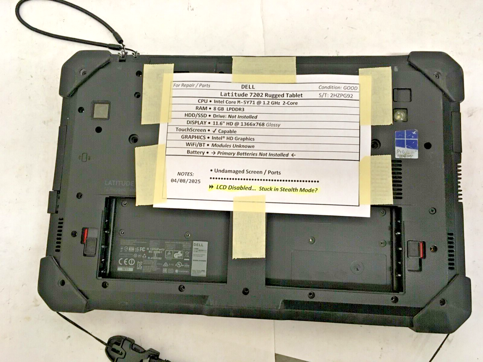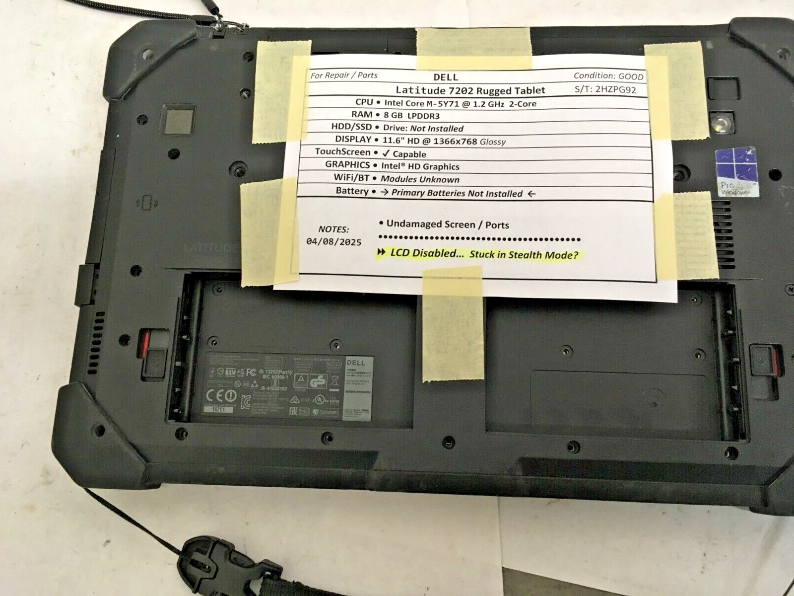 Dell Latitude 7202 Rugged Tablet 11.6" - LCD DISABLED - Intel M-5Y71 8GB RAM
