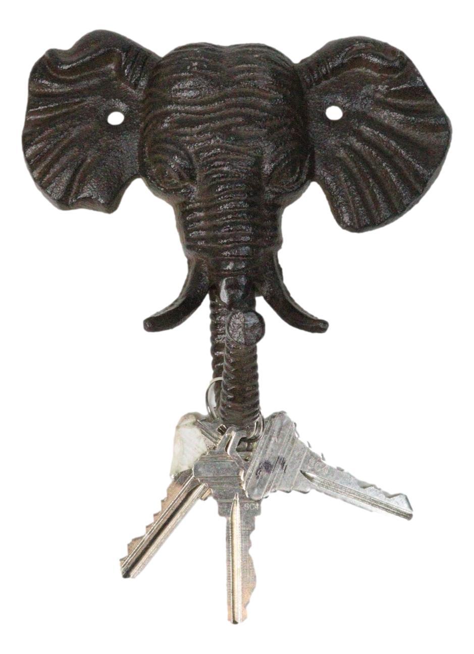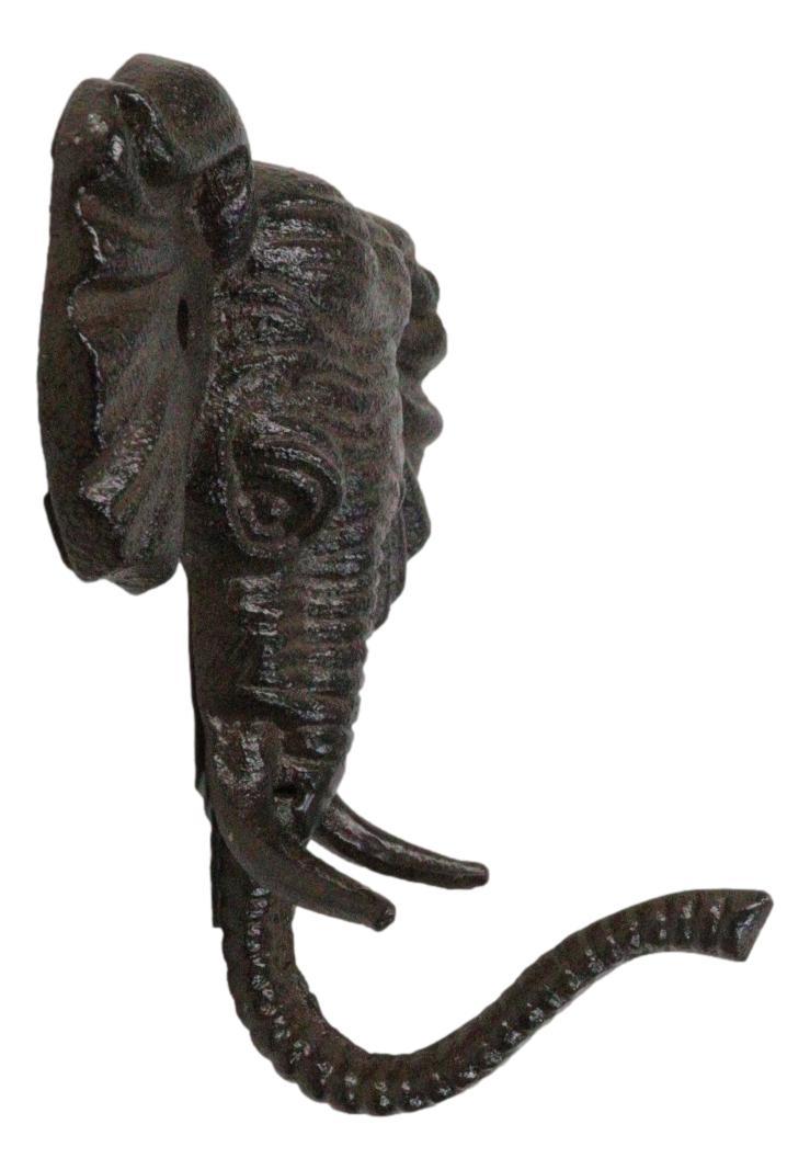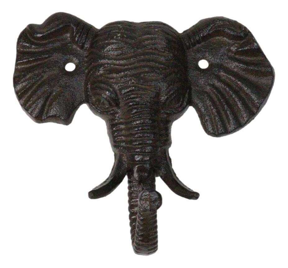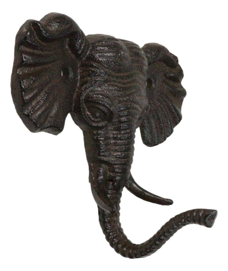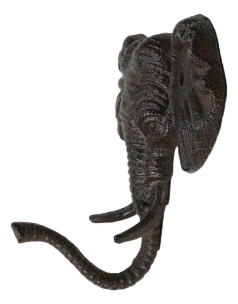 ? Celebrate the majesty of the wild with this African Savanna Patriarch Elephant Head Wall Hook. Featuring a finely detailed elephant head with its trunk raised for good luck, this light duty piece blends functionality with style. Perfect for hanging leashes, hats, keys, or bags, its rustic design adds a bold safari-inspired accent to any entryway, hallway, or nature-themed decor.