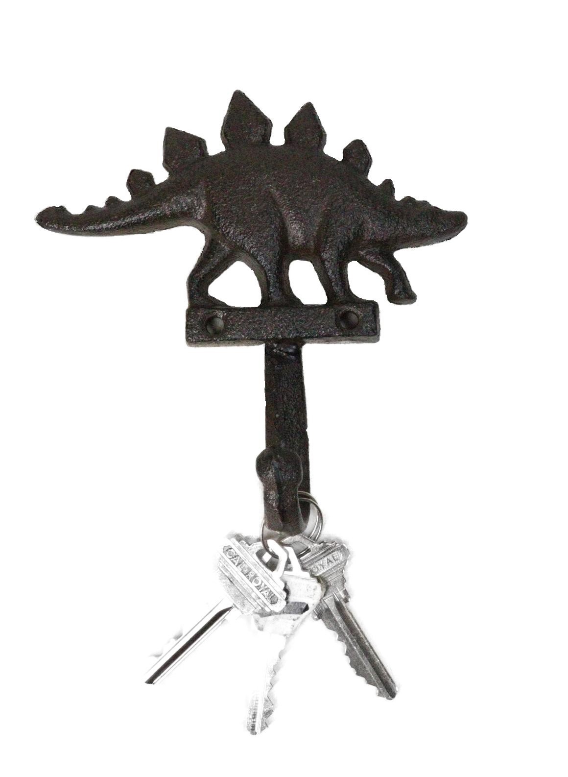 ? Bring prehistoric charm into your space with this Cast Iron Stegosaurus Dinosaur Wall Hook. Crafted with detailed Jurassic-era styling, this sturdy cast iron piece doubles as both decor and function. Its rustic finish adds vintage appeal while providing a durable hook for hanging towels, hats, keys, or accessories-perfect for dinosaur enthusiasts, themed rooms, or unique home accents.