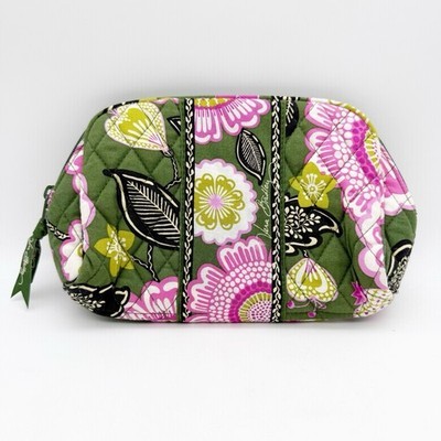 Vera Bradley Olivia Pink Floral Green Cosmetic Bag Makeup Bag