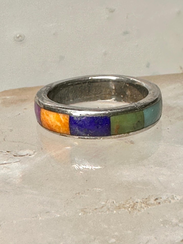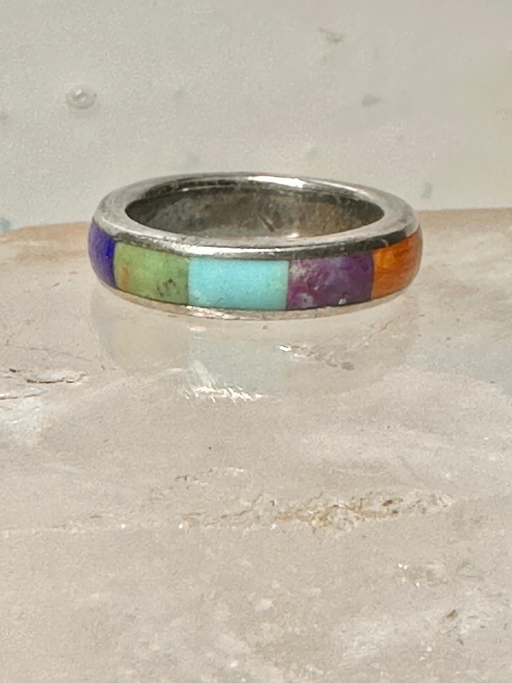 Turquoise ring southwest wedding band size 6.50 sterling silver women men