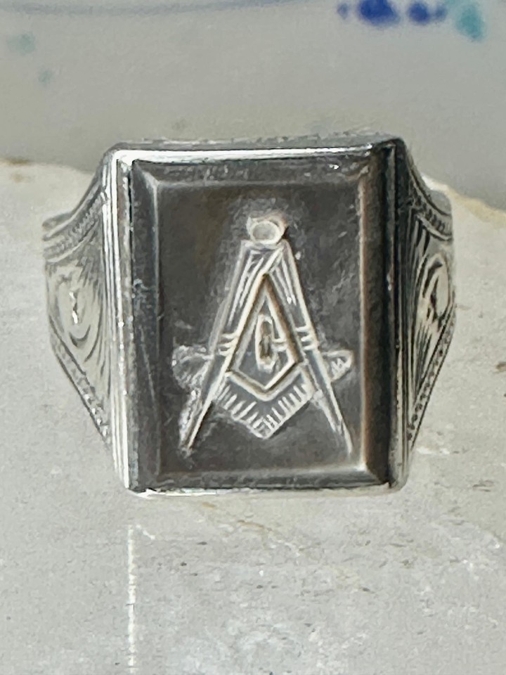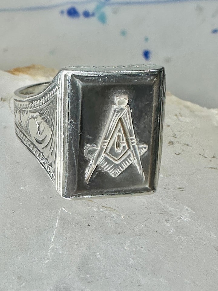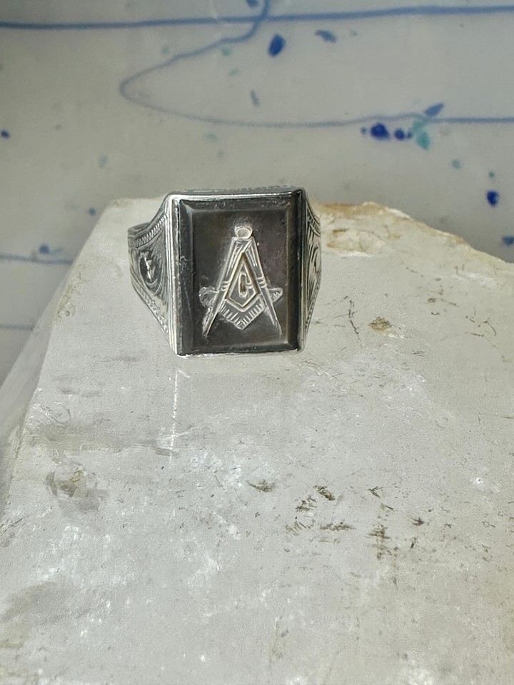 Masonic ring Mother of pearl Mason carved compass size 8.50 sterling silver wome