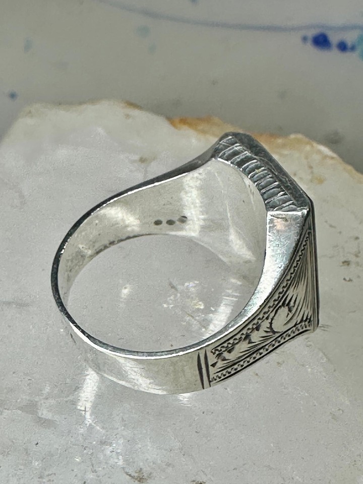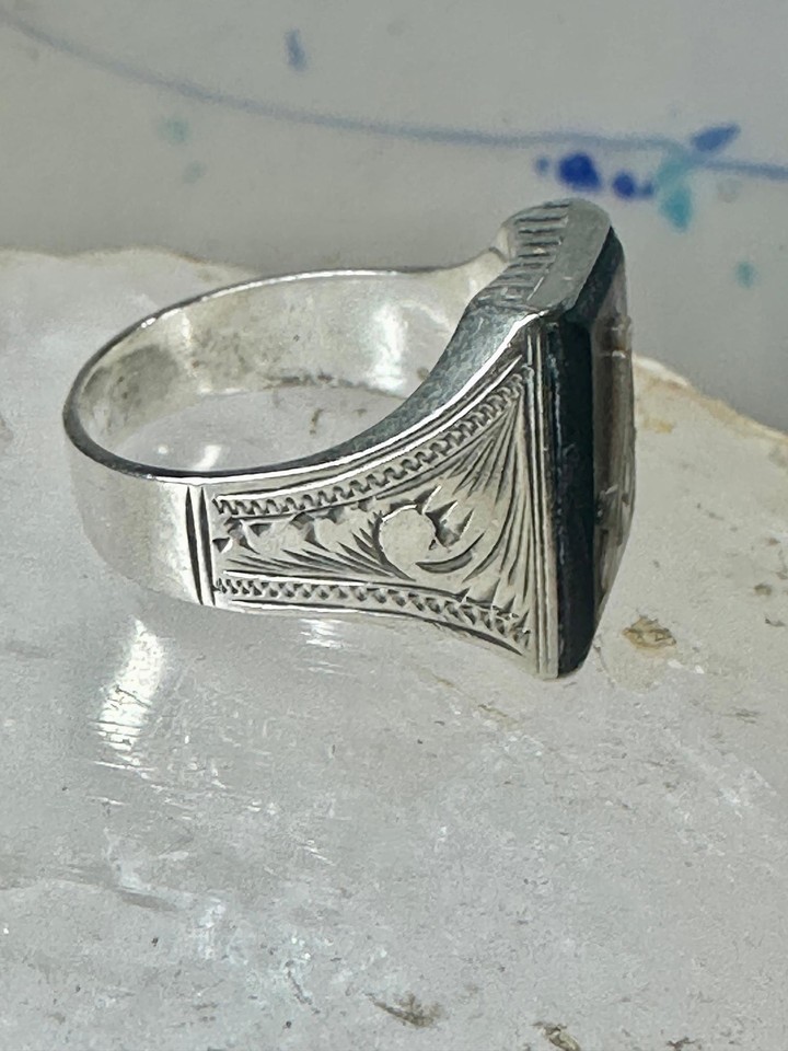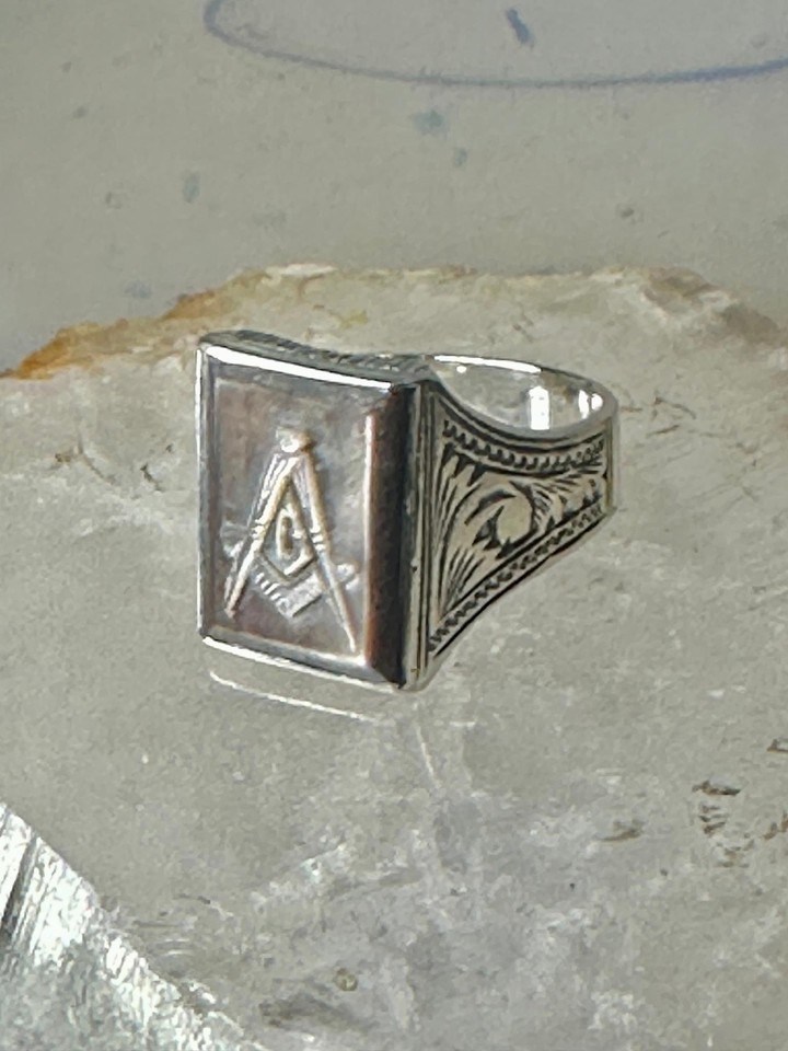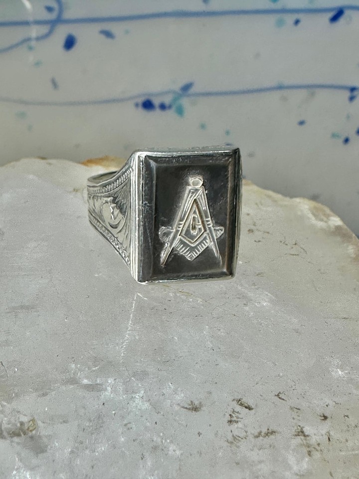 Masonic ring Mother of pearl Mason carved compass size 8.50 sterling silver women men