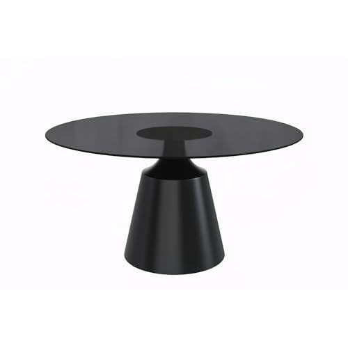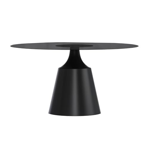 LeisureMod 60" Round Mid-Century Modern Dining Table - Black Sintered Stone/Glas