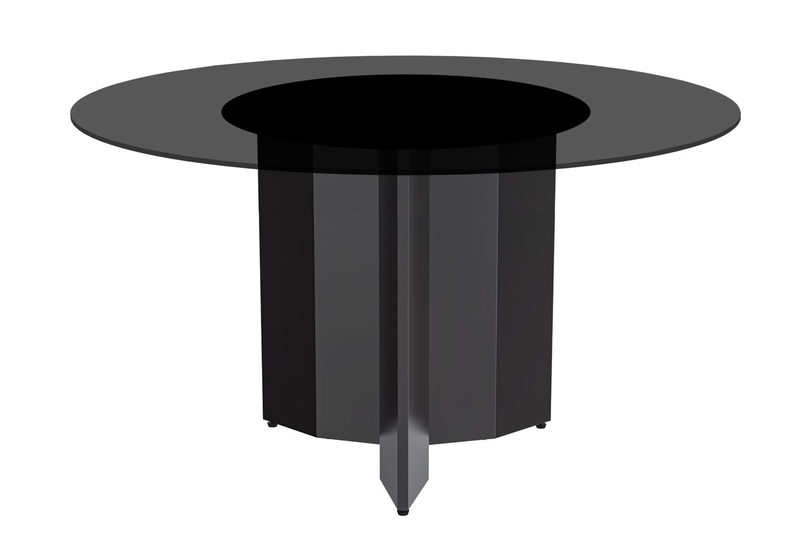 LeisureMod Zevro Round Dining Table with Sintered Stone/Glass Tabletop in Black