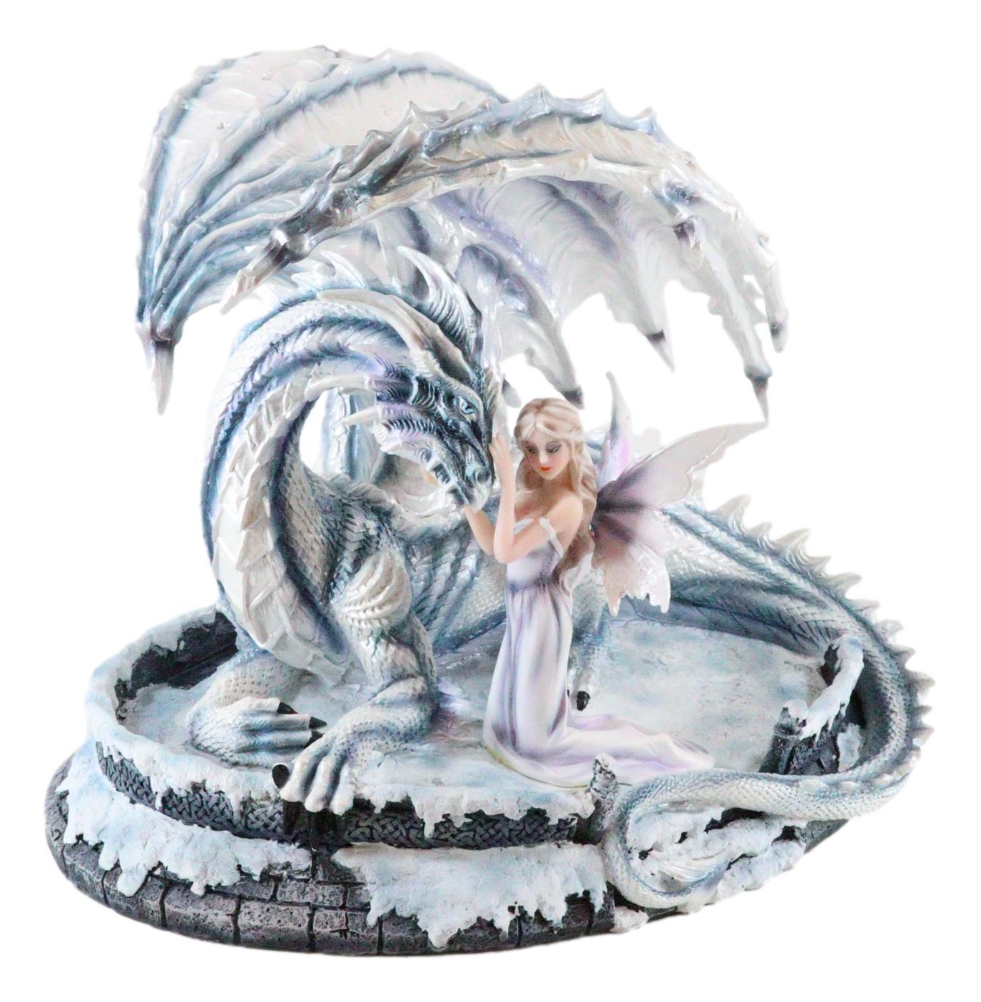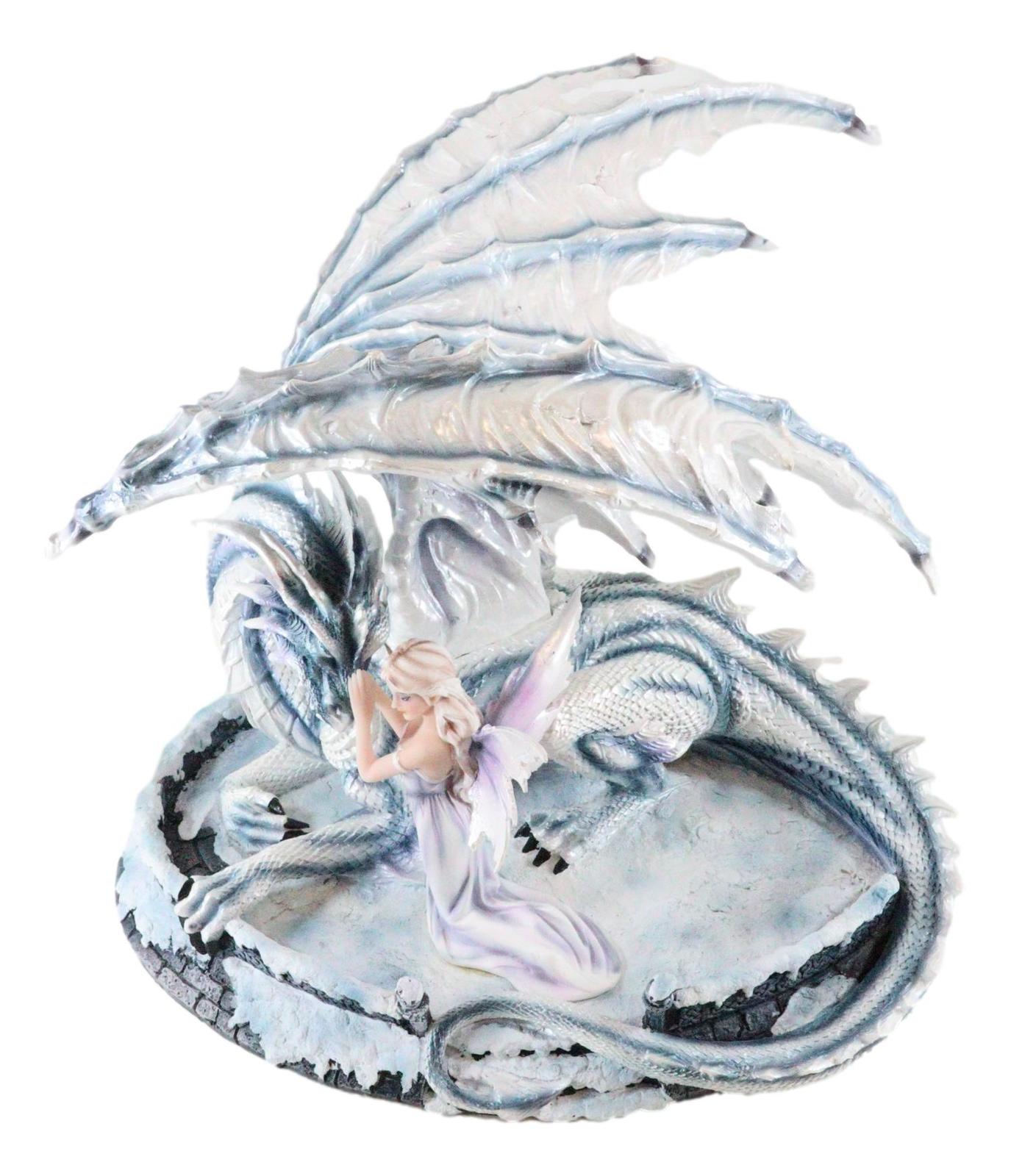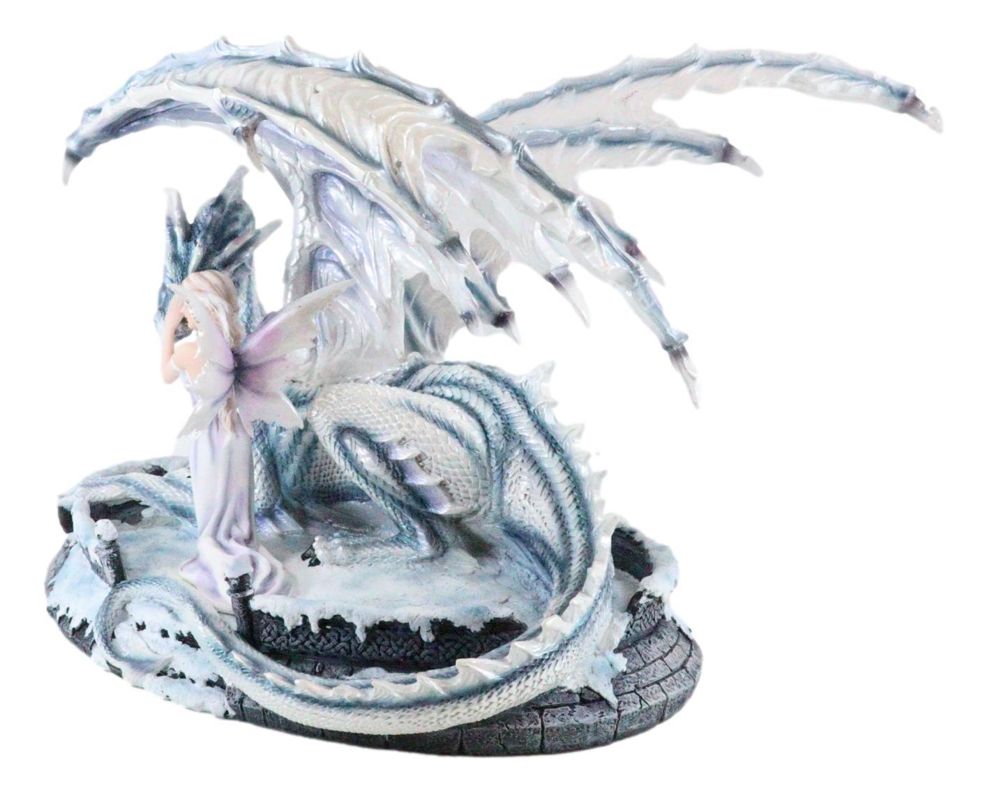 Ebros Large 15" Long Winter Blizzard Fairy with Giant White Dragon Statue