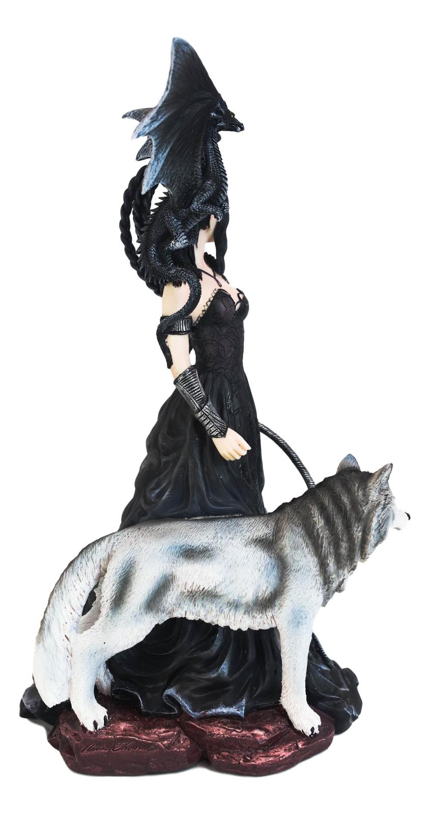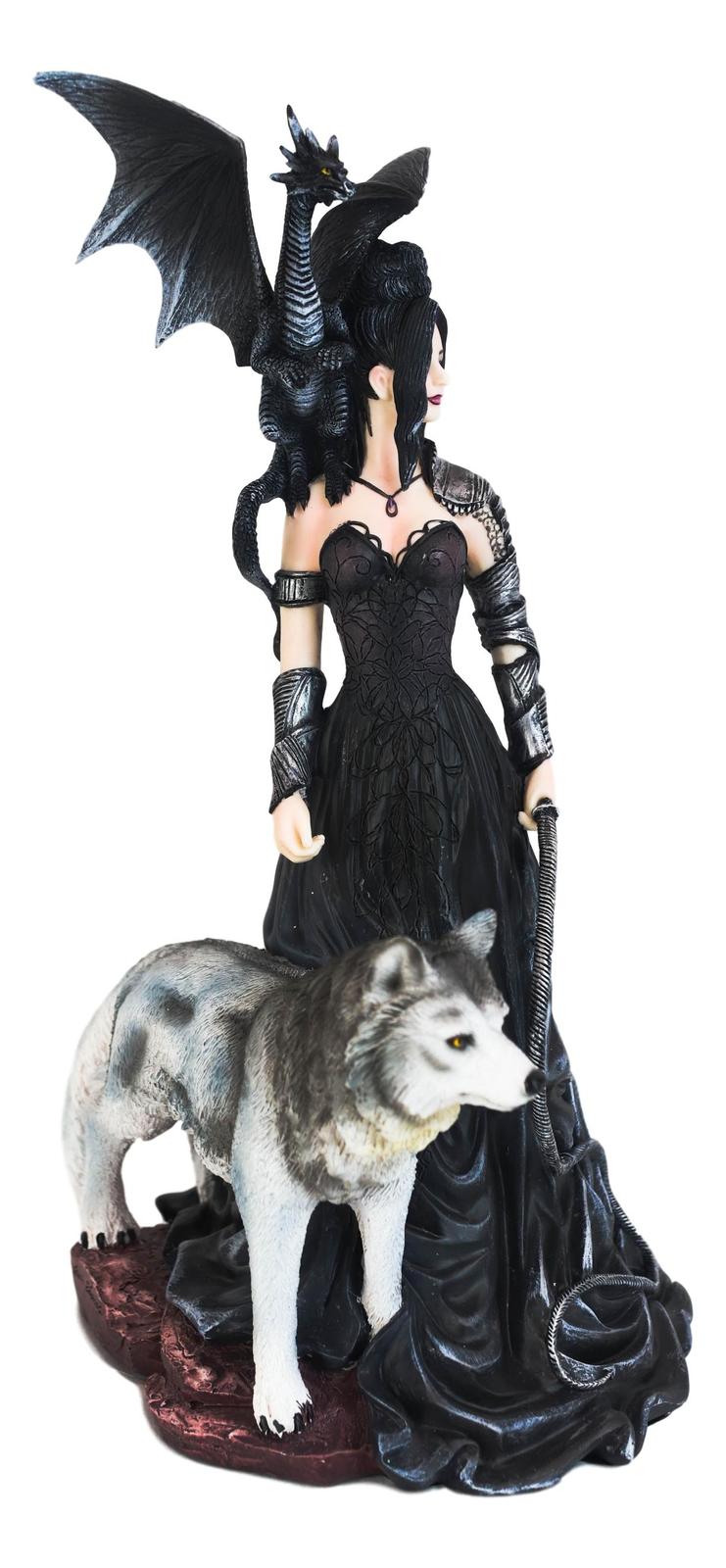 Gothic Maestra Maleficent Witch Fairy With Alpha Wolf and Black Dragon Statue