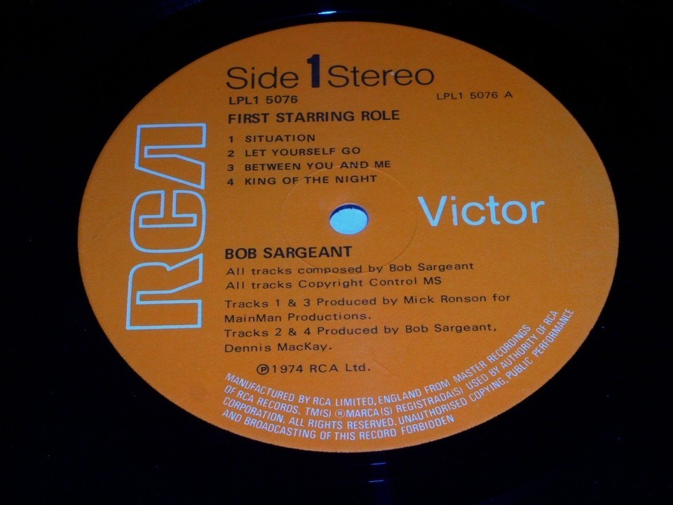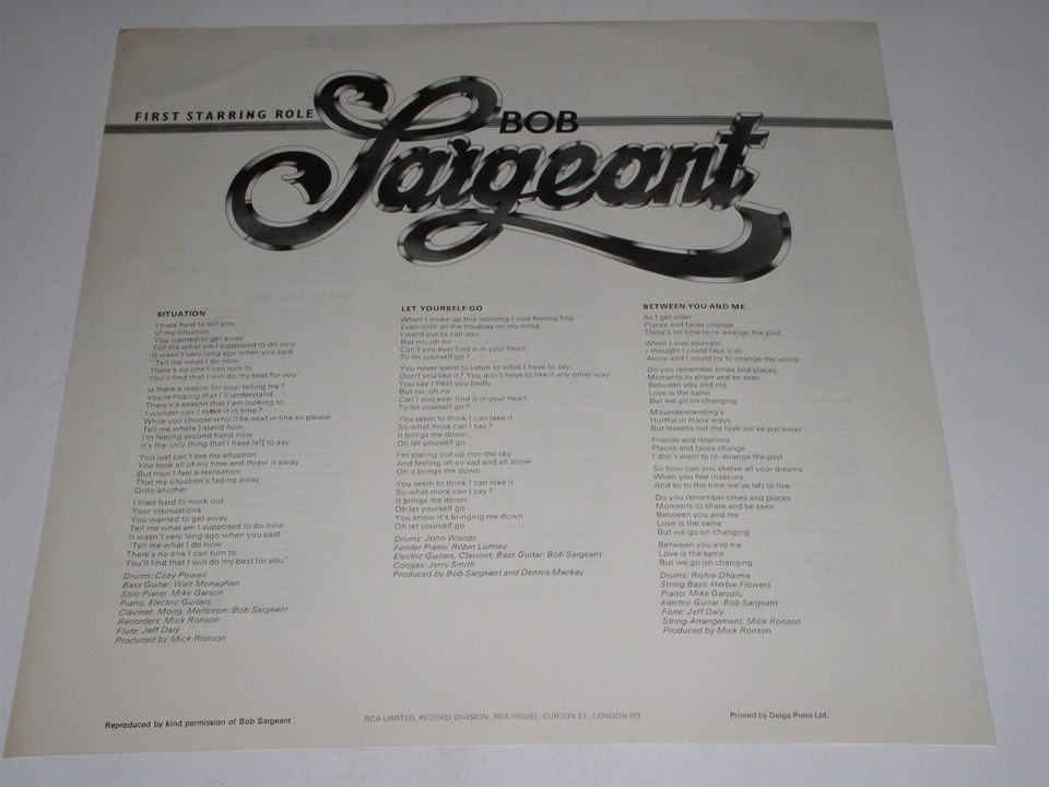 This is a vintage, UK import phonograph record album by Bob Sargeant, entitled, "First Starring Role". Record label: RCA LP1 5076. Comes with the lyric sheet as shown.