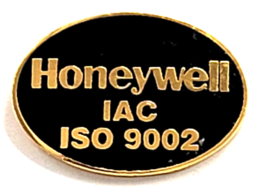 Honeywell IAC ISO 9002 Pin Gold Tone Black Enamel Quality Program Recognition