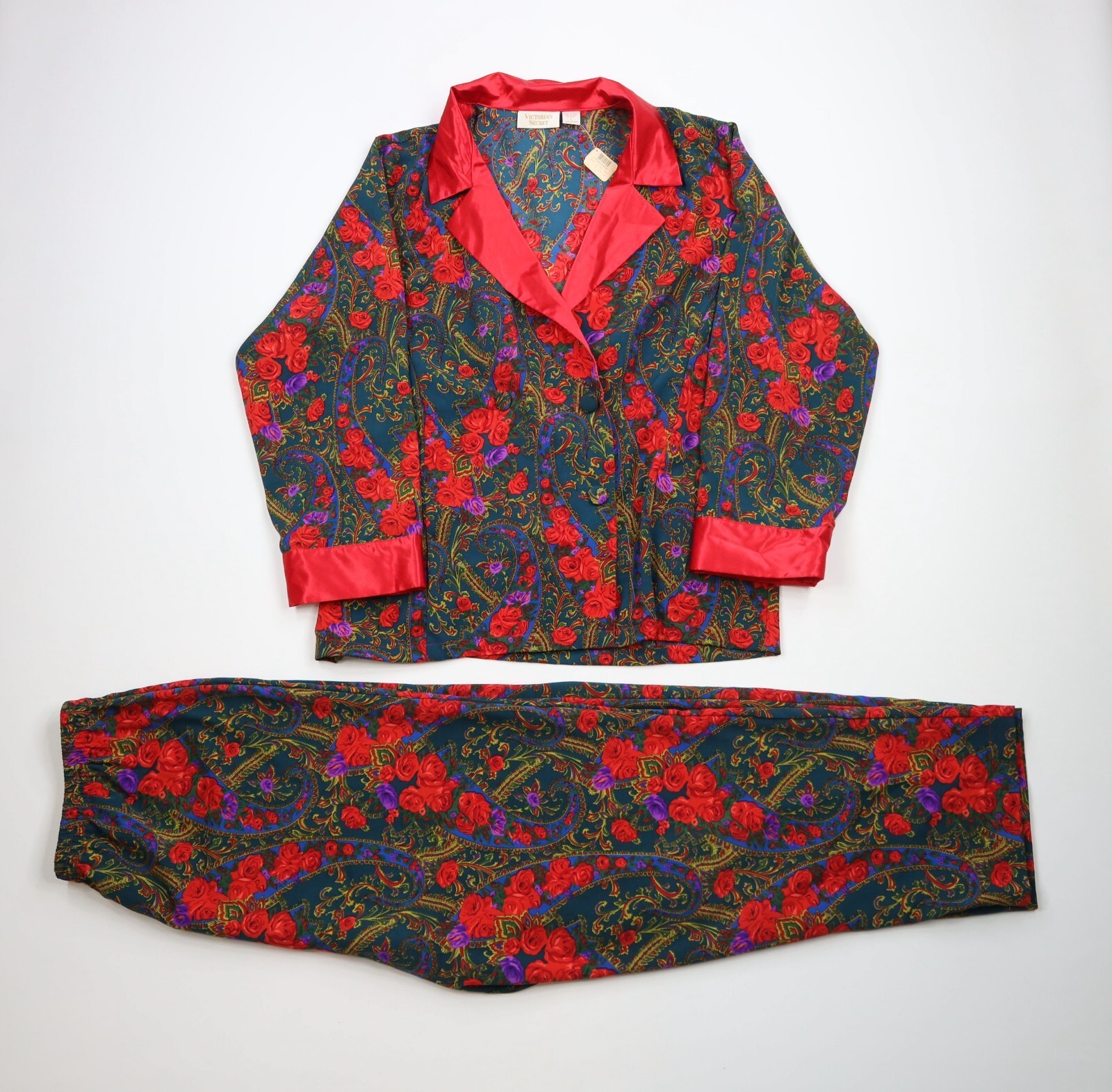 Deadstock Vtg 90s Victorias Secret Womens L 2 Piece Flower Paisley Pajamas Set