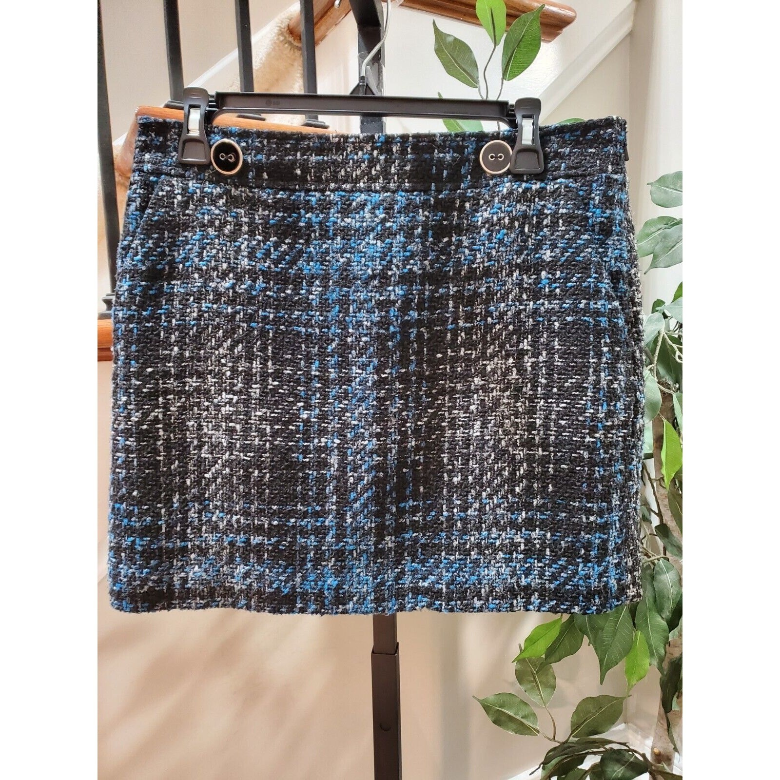 Ann Taylor Loft Women's Black Blue Polyester Straight Casual Mini Skirt Size 6.