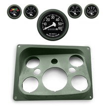 Military 5 piece set of dashboard gauges + Instrument Panel. Comes in three color choices: NATO Black, Desert tan or 383 Green. Panel dimensions: 11? x 8? x 2? Speedometer Replace PN: MS39021-2 NSN: 6680-00-933-3599 Sizes: 85mm (3-3/8") Measuring Range: 0 - 60 (MPH) * Military speedometers are mechanical, using a cable to transmit speed information from the vehicle's drivetrain to the speedometer in the dashboard. This is a more robust and reliable system compared to electronic speedometers, as it's less prone to damage and easier to repair in the field Fuel Level Gauge Replace PN: MS24544-2 NSN: 6680-00-933-3600 Sizes: 52mm (2-1/16") Measuring Range: Empty - 1/2 - Full Resistance: 0 (E) - 30 (F) ohms Oil Pressure Gauge Replace PN: MS24540-2 NSN: 6620-00-115-9042 Sizes: 52mm (2-1/16") Measuring Range: 0 - 120 (PSI) Volt Gauge Replace PN: MS24532-2 NSN: 6625-01-086-9580 Sizes: 52mm (2-1/16") Measuring Range: 16 - 32 (V) Water Temperature Gauge Replace PN: MS24543-2 NSN: 6685-00-936-2139 Sizes: 52mm (2-1/16") Measuring Range: 120 - 240 (F)