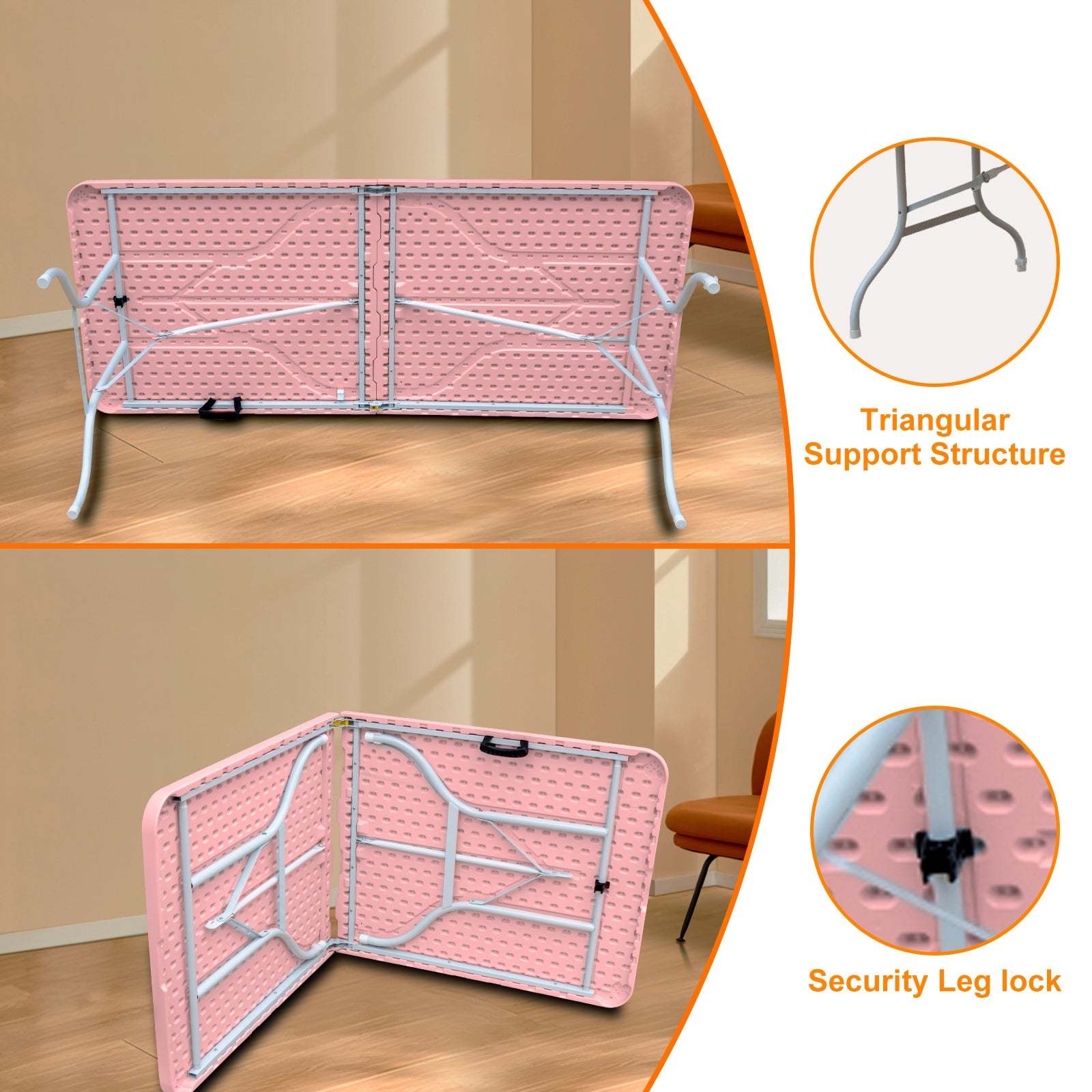 6ft Pink Plastic Folding Table - Portable, High Load Bearing