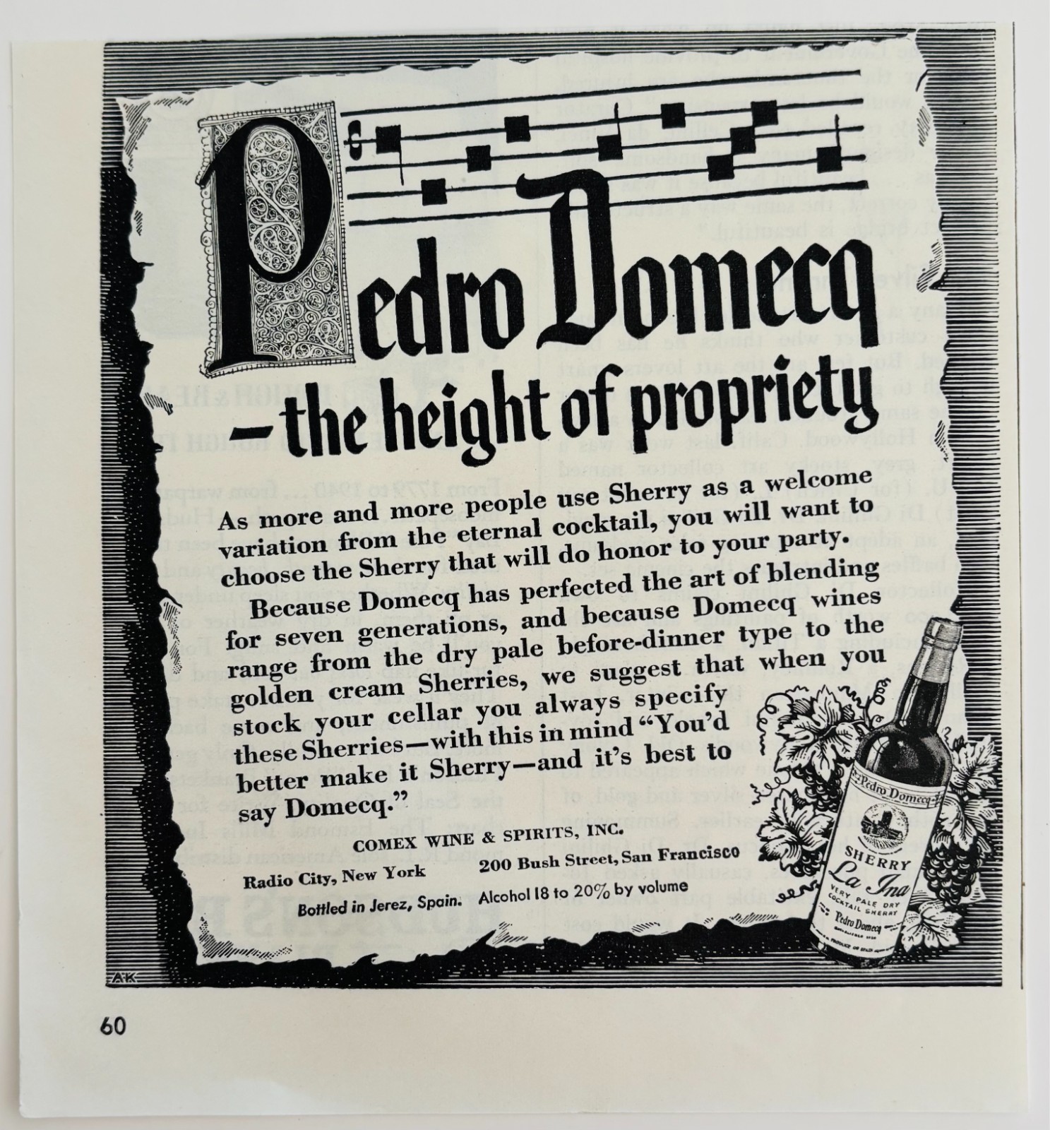 1940 Pedro Domecq Sherry Advertisement New York Radio City Distillery DWJ5C