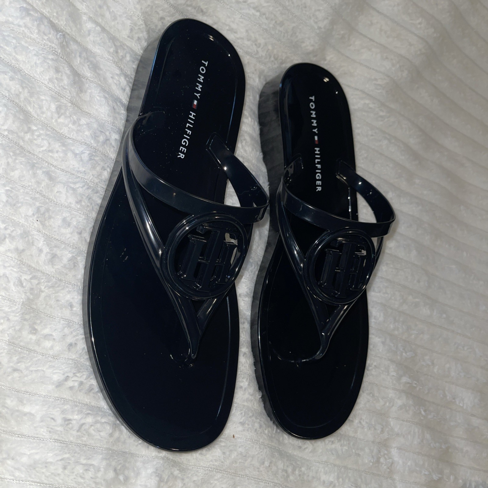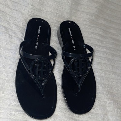 Tommy Hilfiger Vedna Sandals Black Jelly Thong Cutout Logo Flip Flops sz 9 new