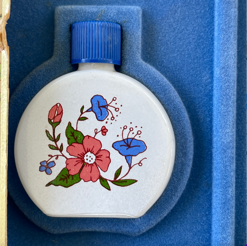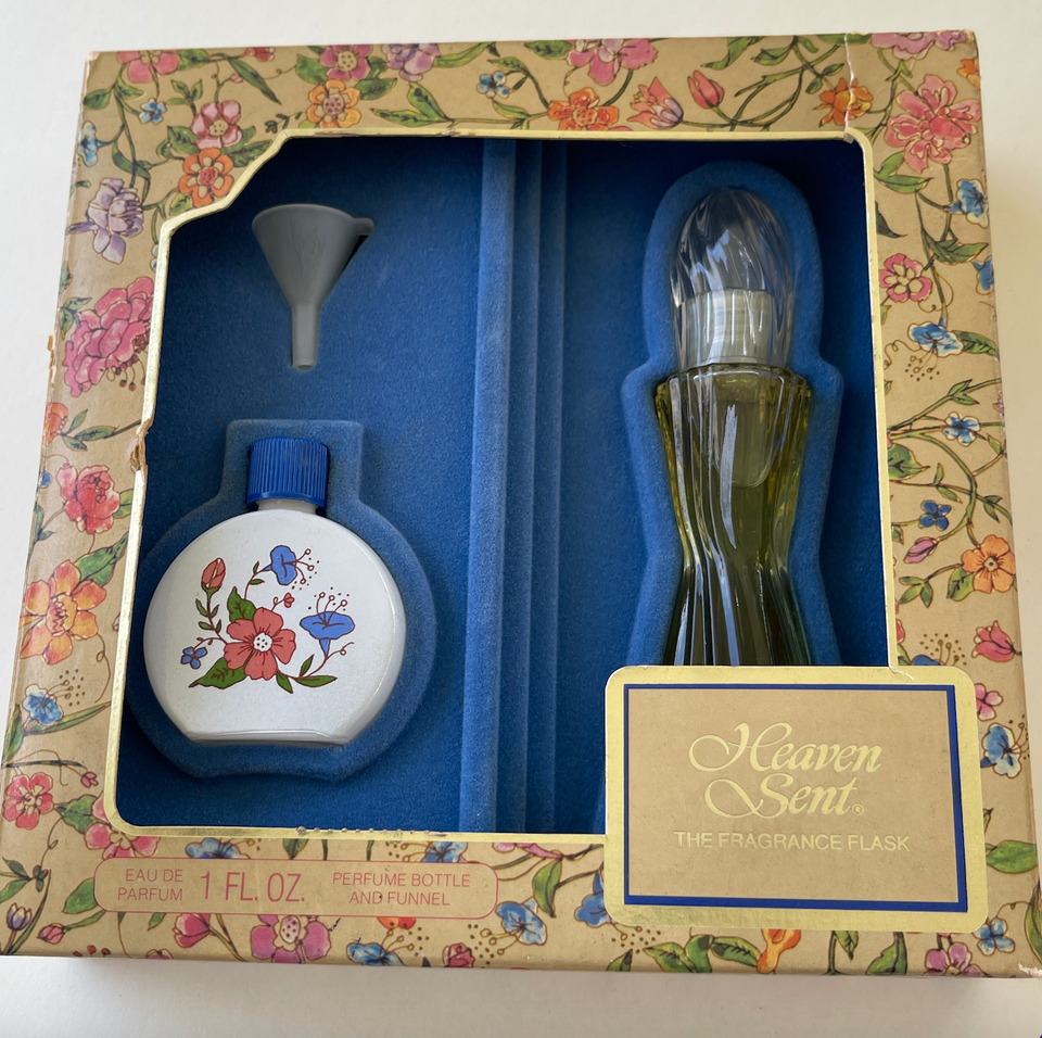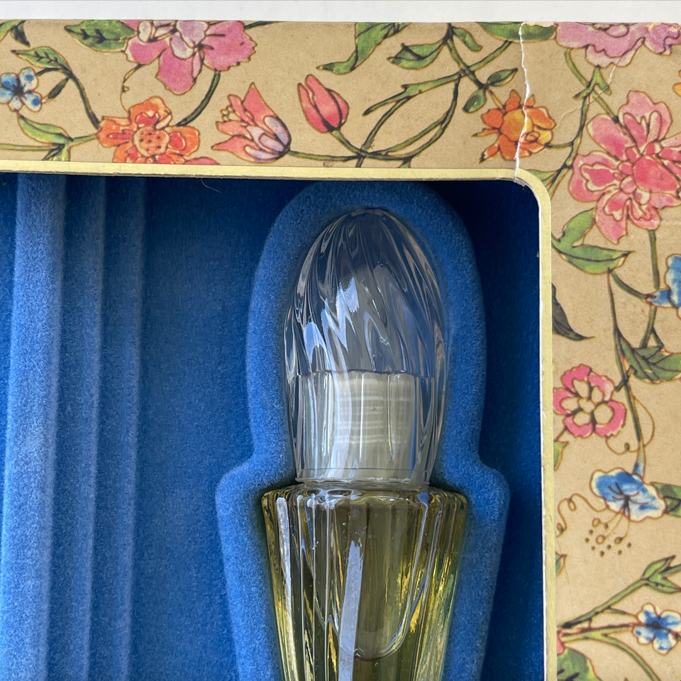 This is a vintage set. The box is in rough shape, with rips and some stains. Set includes 1 ounce eau de parfum, perfume bottle and funnel. Please see all gallery photos. We are a smoke free, pet friendly home. Have a great day!