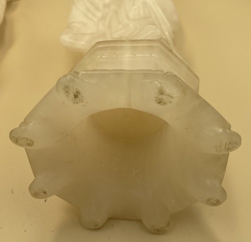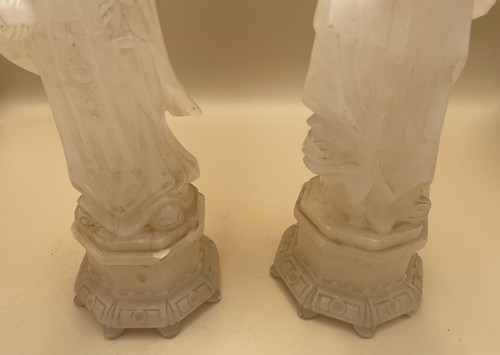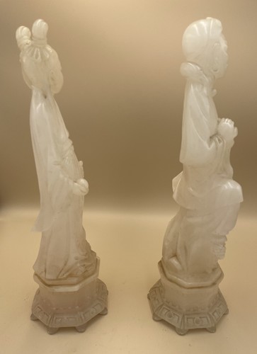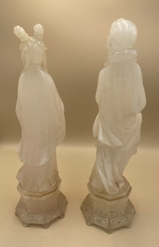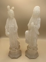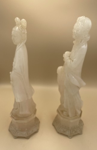 Pair of Vintage Hand Carved Rose Quartz Figurines 12" Chinoiserie