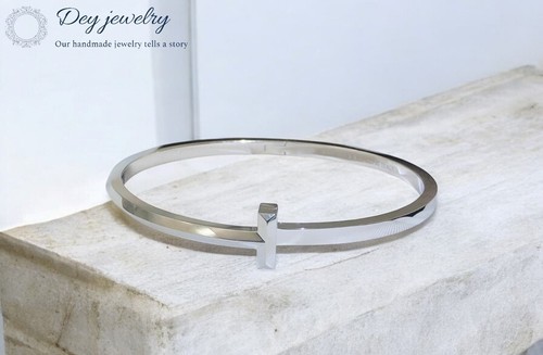 The featured bangle is cast in .925 sterling silver and showcases an open wide-cuff design in high-polish silver with rib-detailed edges.