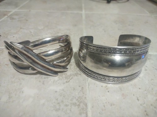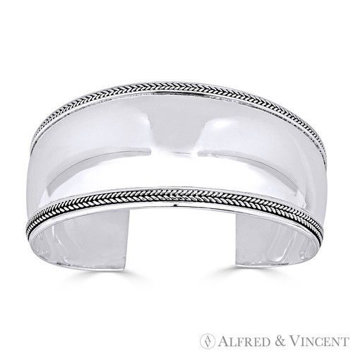Polished & Ribbed Wide Open Cuff Bangle Bracelet Armband in .925 Sterling Silver