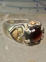 Black Hills Gold ring Art Garnet Heart leaves band size 5.75 pinky sterling silver women men