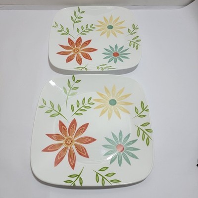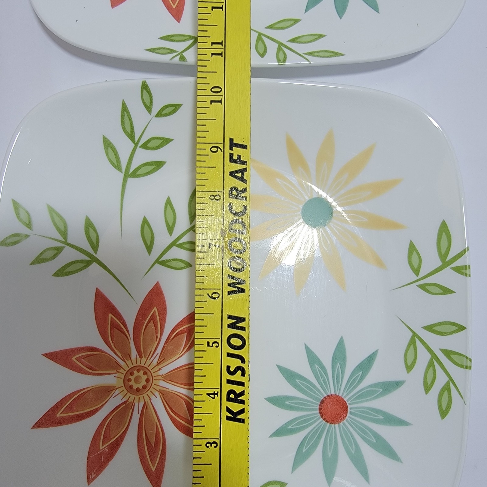 2 Corelle Corning Square Happy Days Plates 10.5" Floral