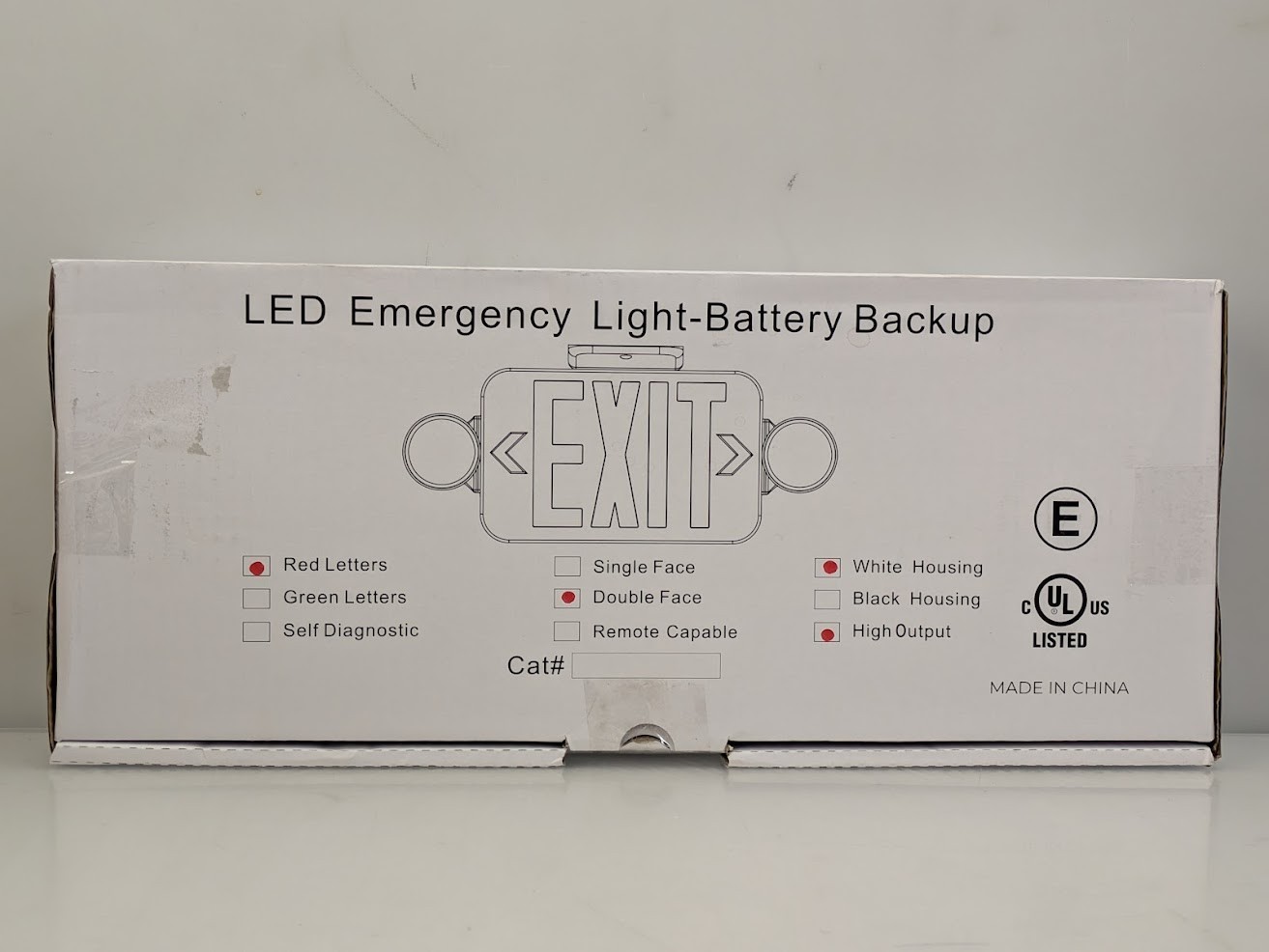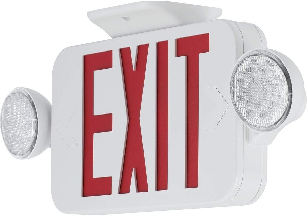 LED Exit Sign Combo, Face style: Universal, Color: White, Number of Lamps: 2, Voltage Rating: Dual-voltage 120 or 277 VAC. The PECUE Series can be applied in stair-wells, hallways, offices and other commercial applications. Red lettering.