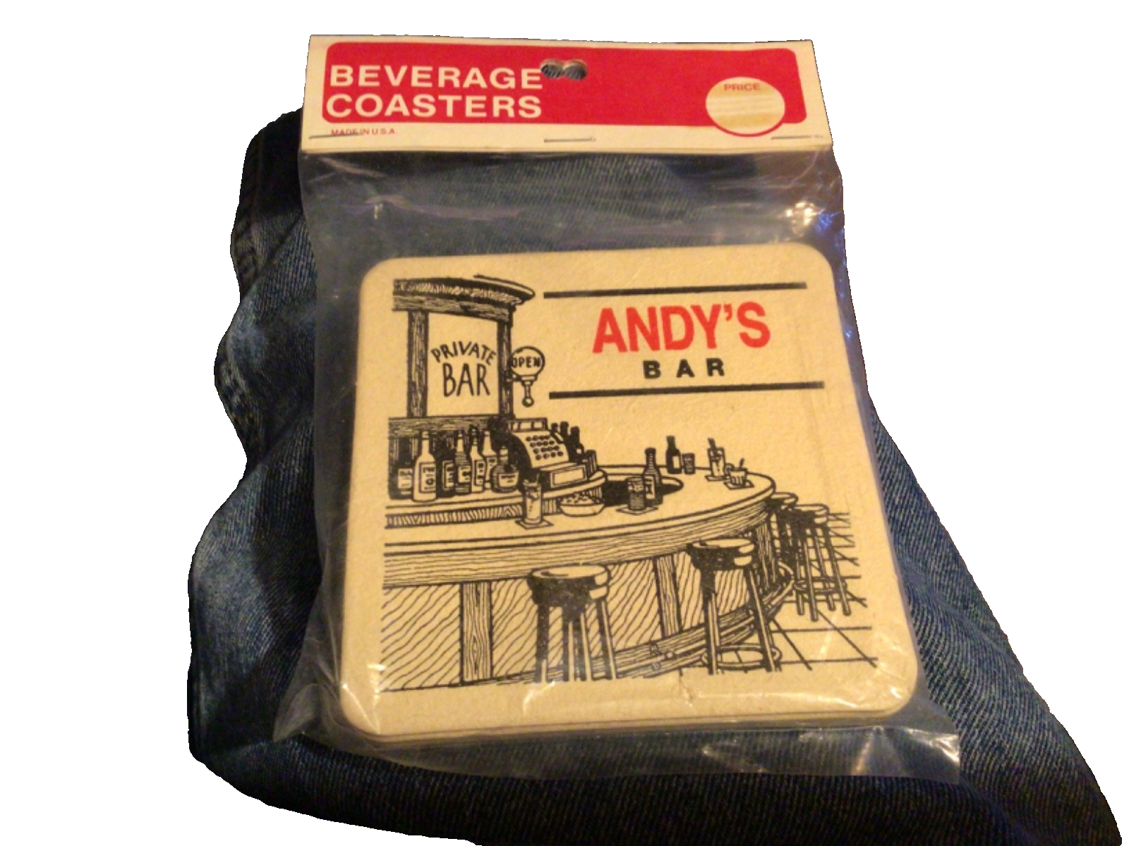 ANDY'S BAR Vintage Coaster Set of 6 Maude Corp Novato CA Humor Pub Decor USA